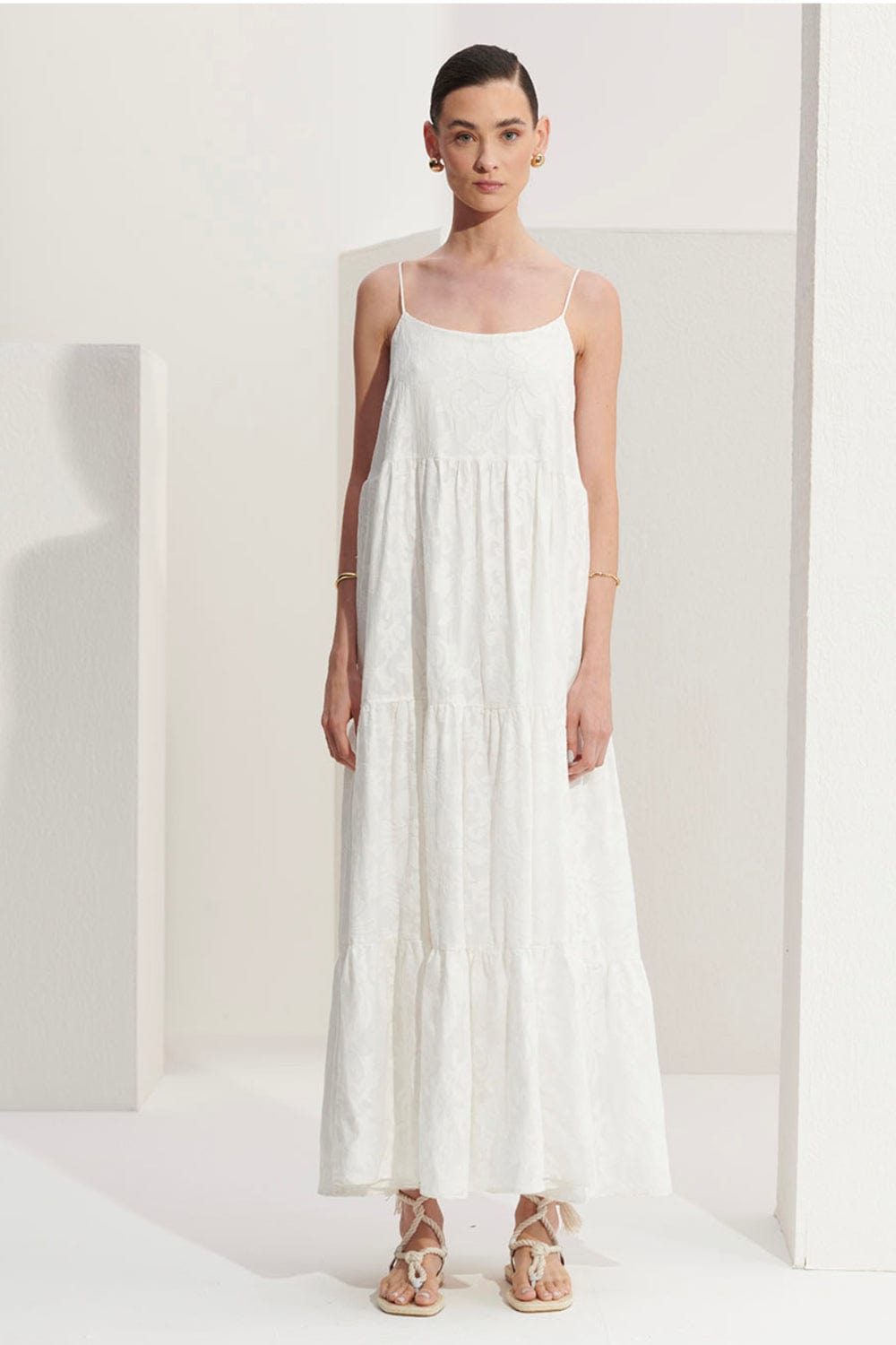 L'Cecci - Vestido Longo Alça Fina Jacquard Off White