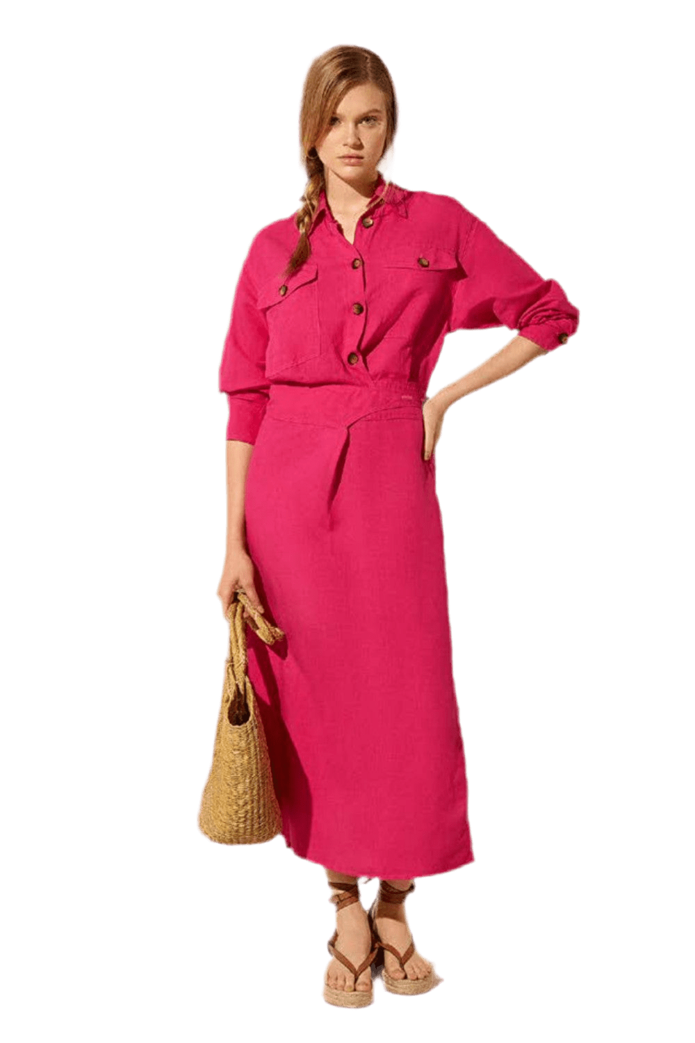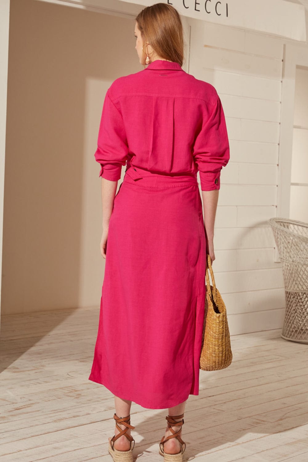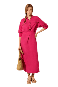 L'Cecci - Vestido Midi Viscolinho Rosa