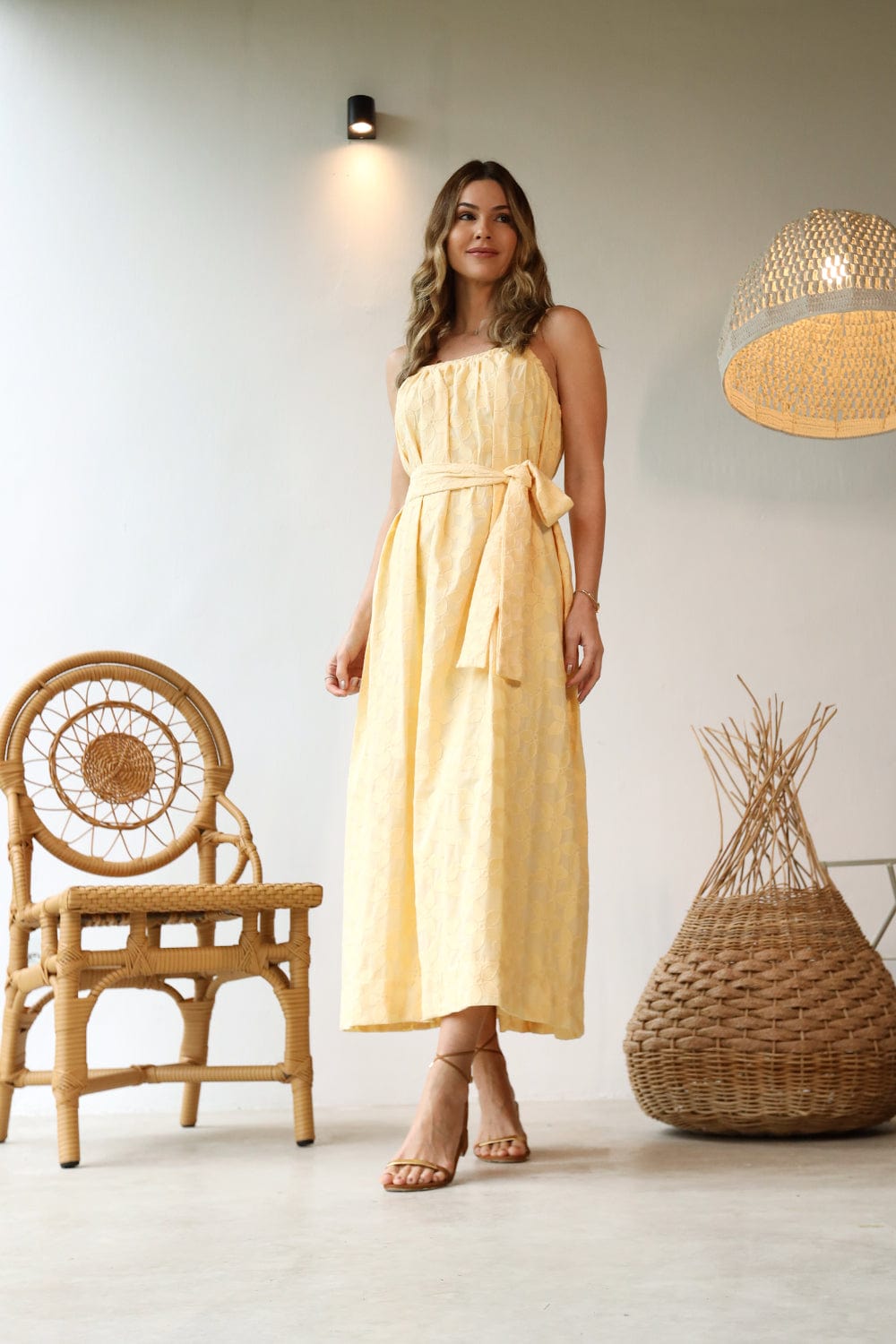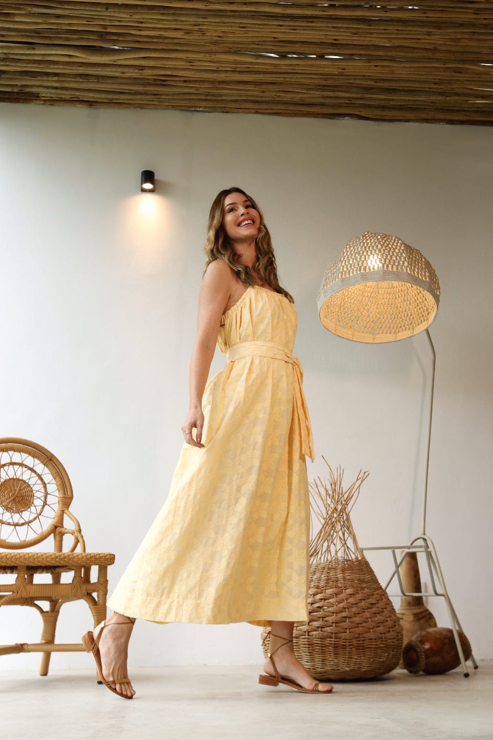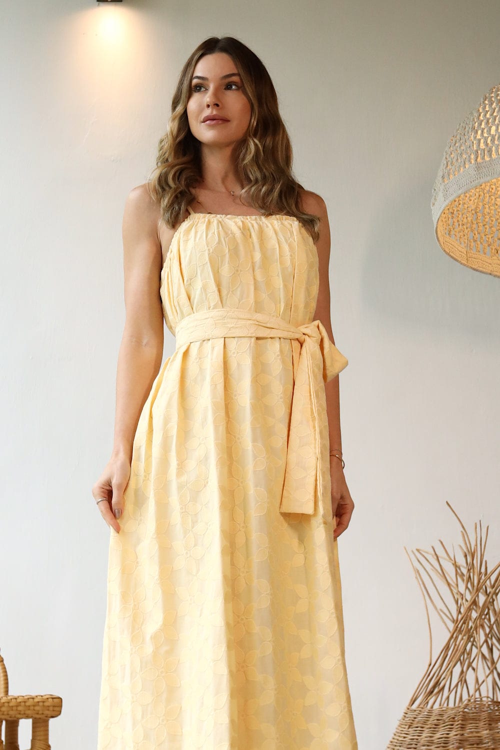 L'Cecci - Vestido Midi Alça Fina Amarelo