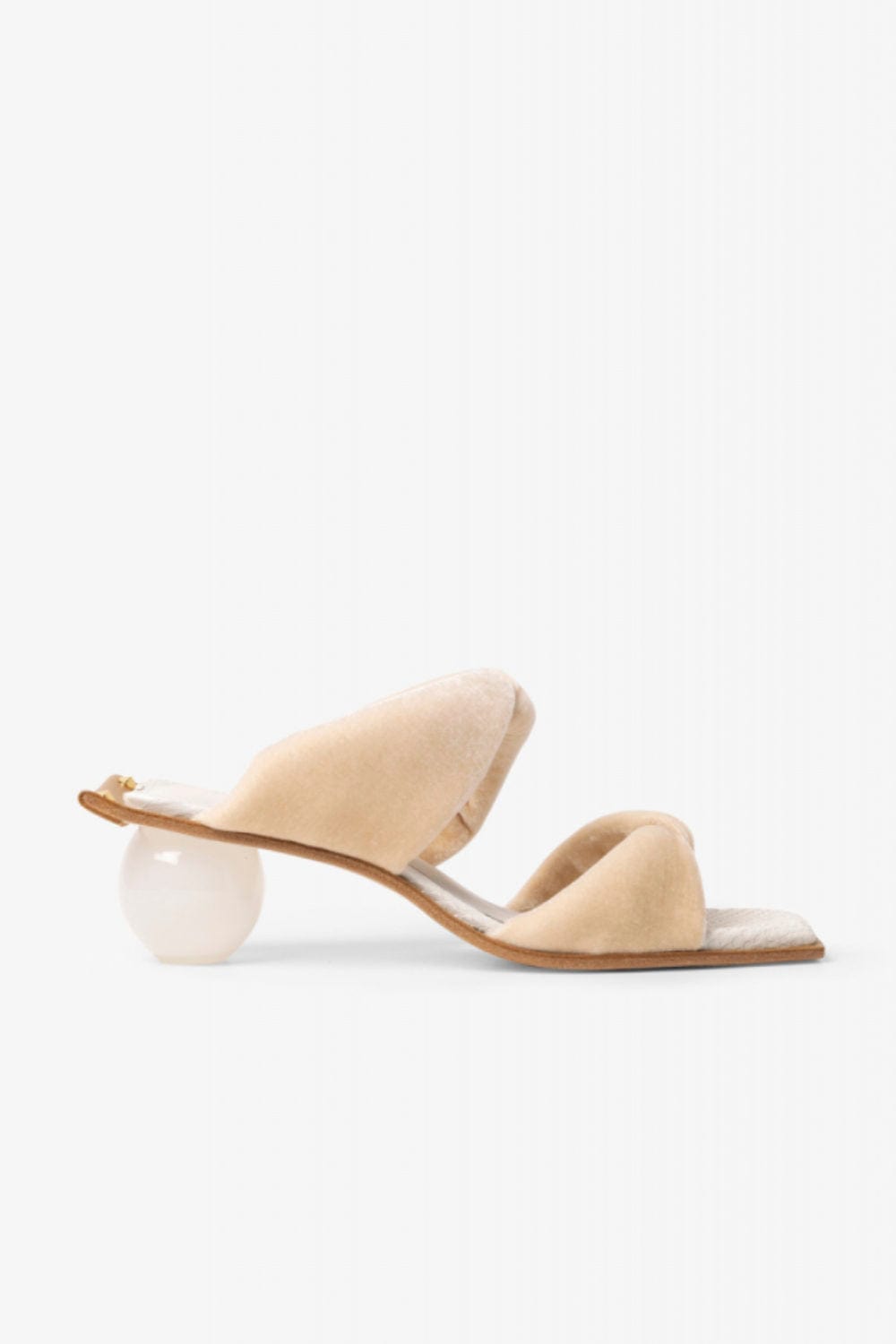 A sua versão com salto bola de acrílico moldado, garantem o tom fashion e festivo.
