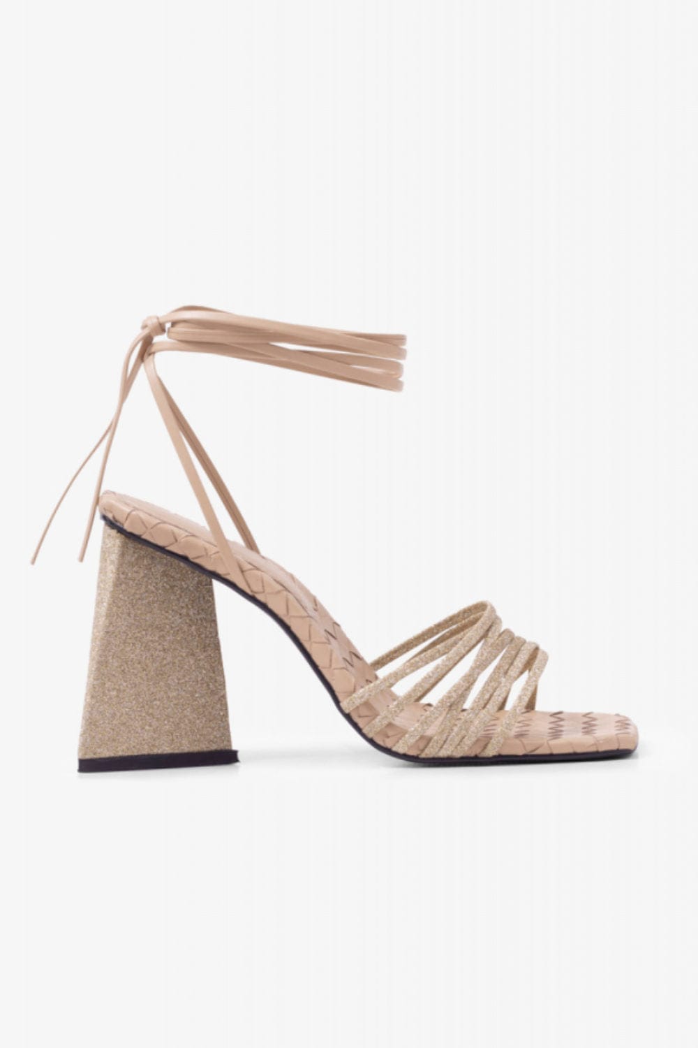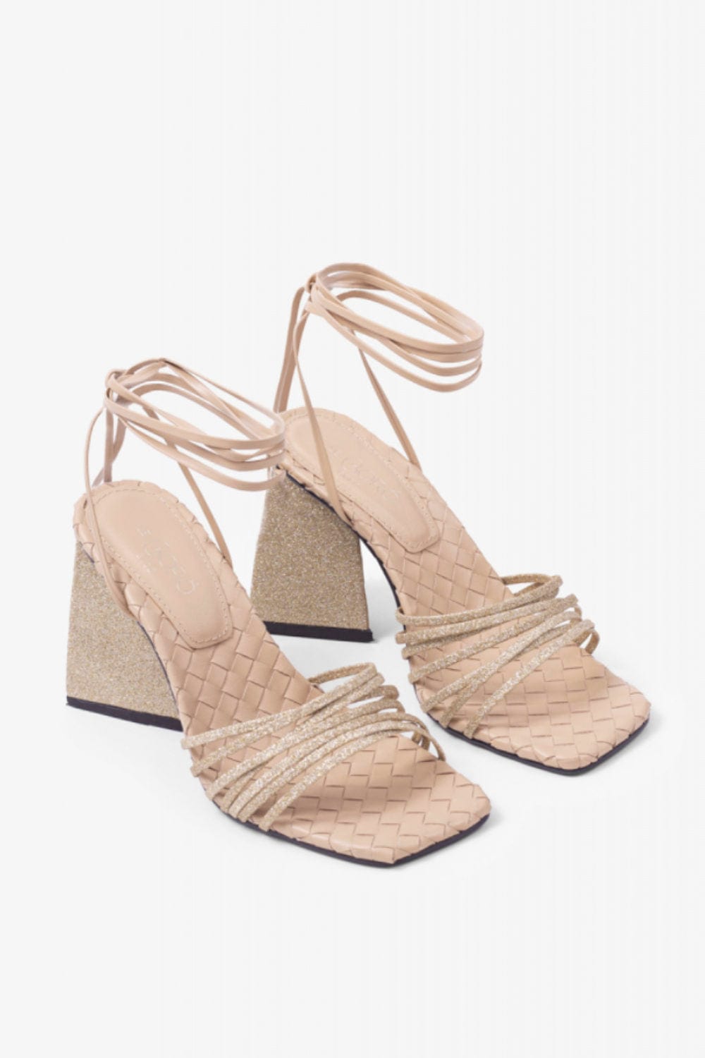 Sandália trançada com faixas de couro, elaboradas de forma artesanal.