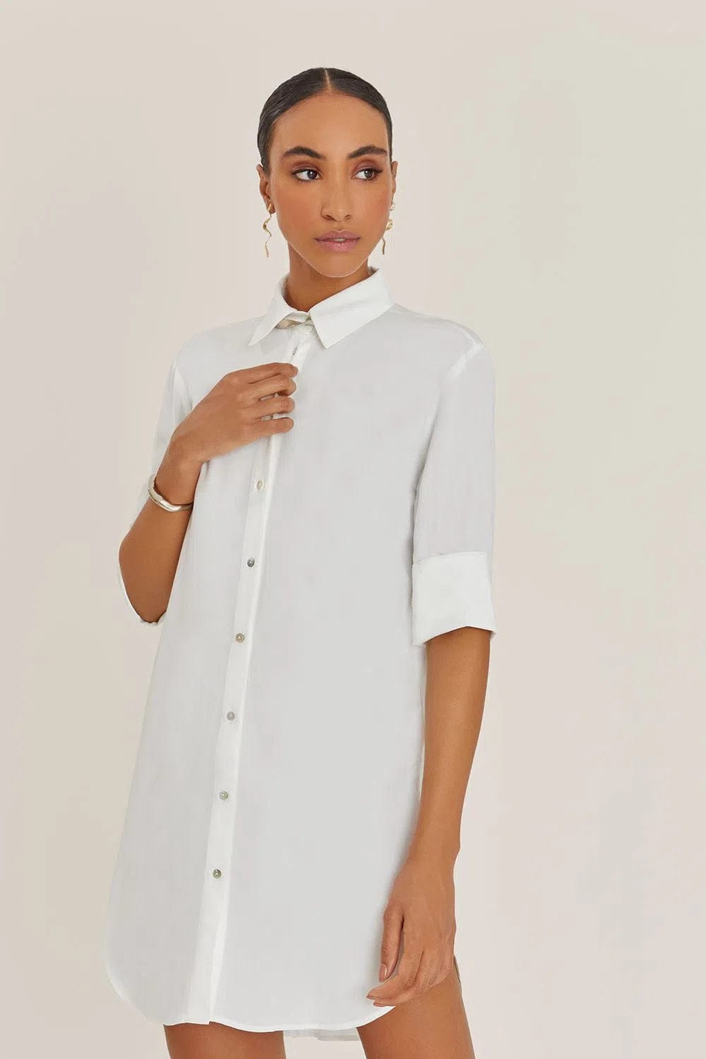 Lenny Niemeyer - Vestido Curto Chemisier Fraldado Off White