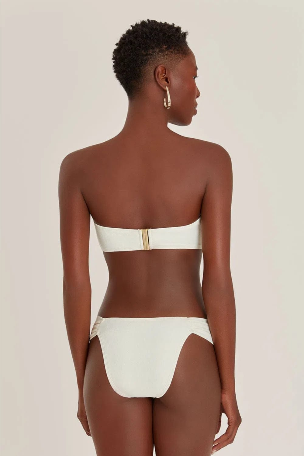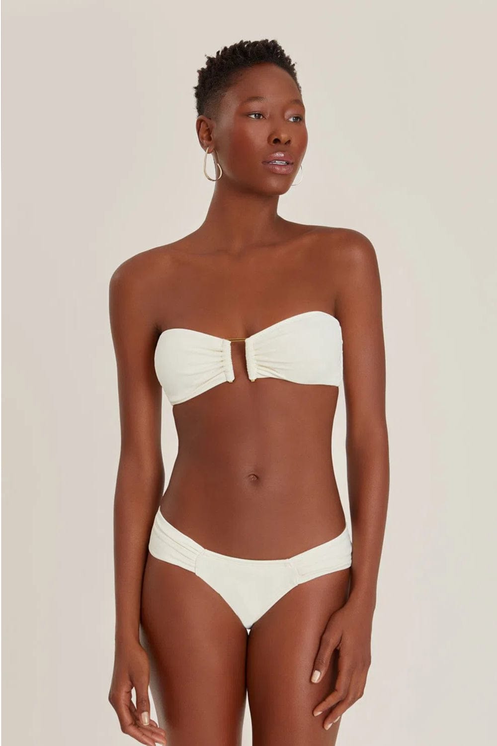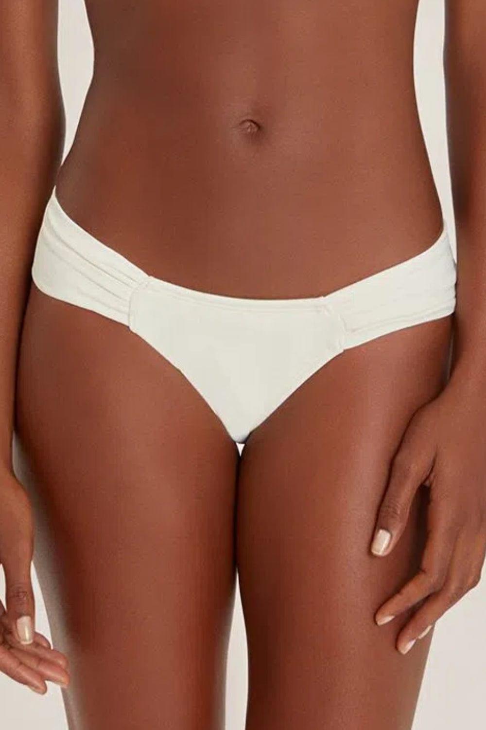 Calça com lateral drapeada e ideal para quem tem quadris largos. Lycra com textura.