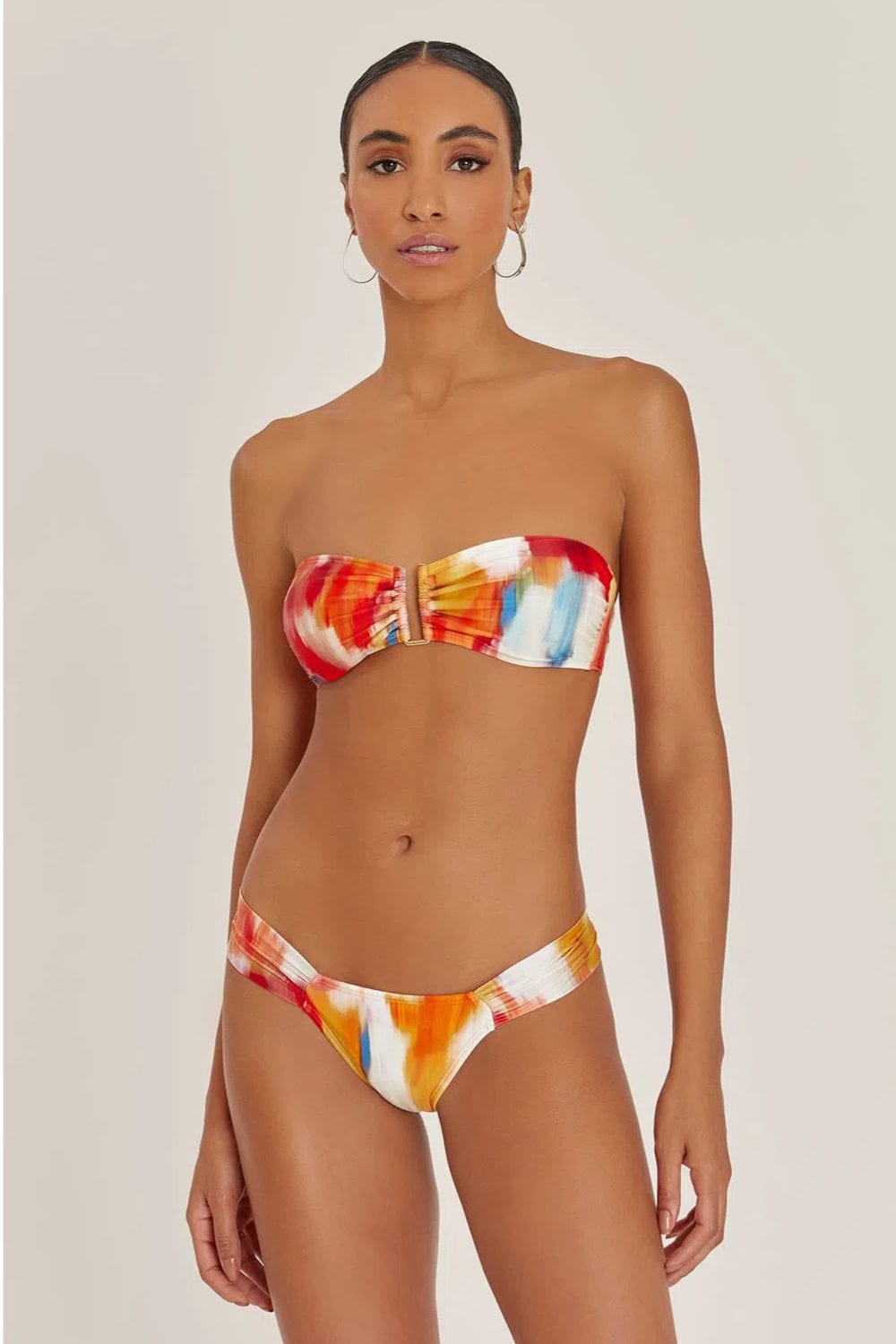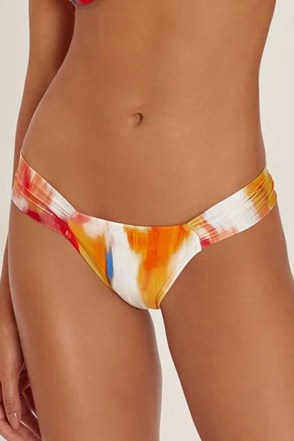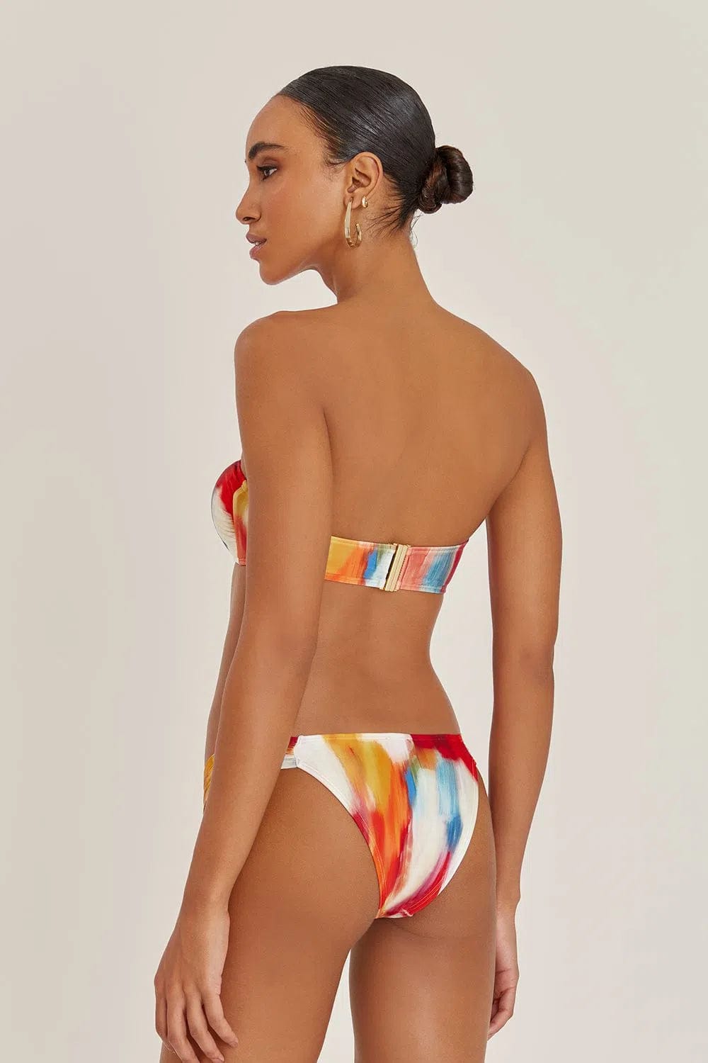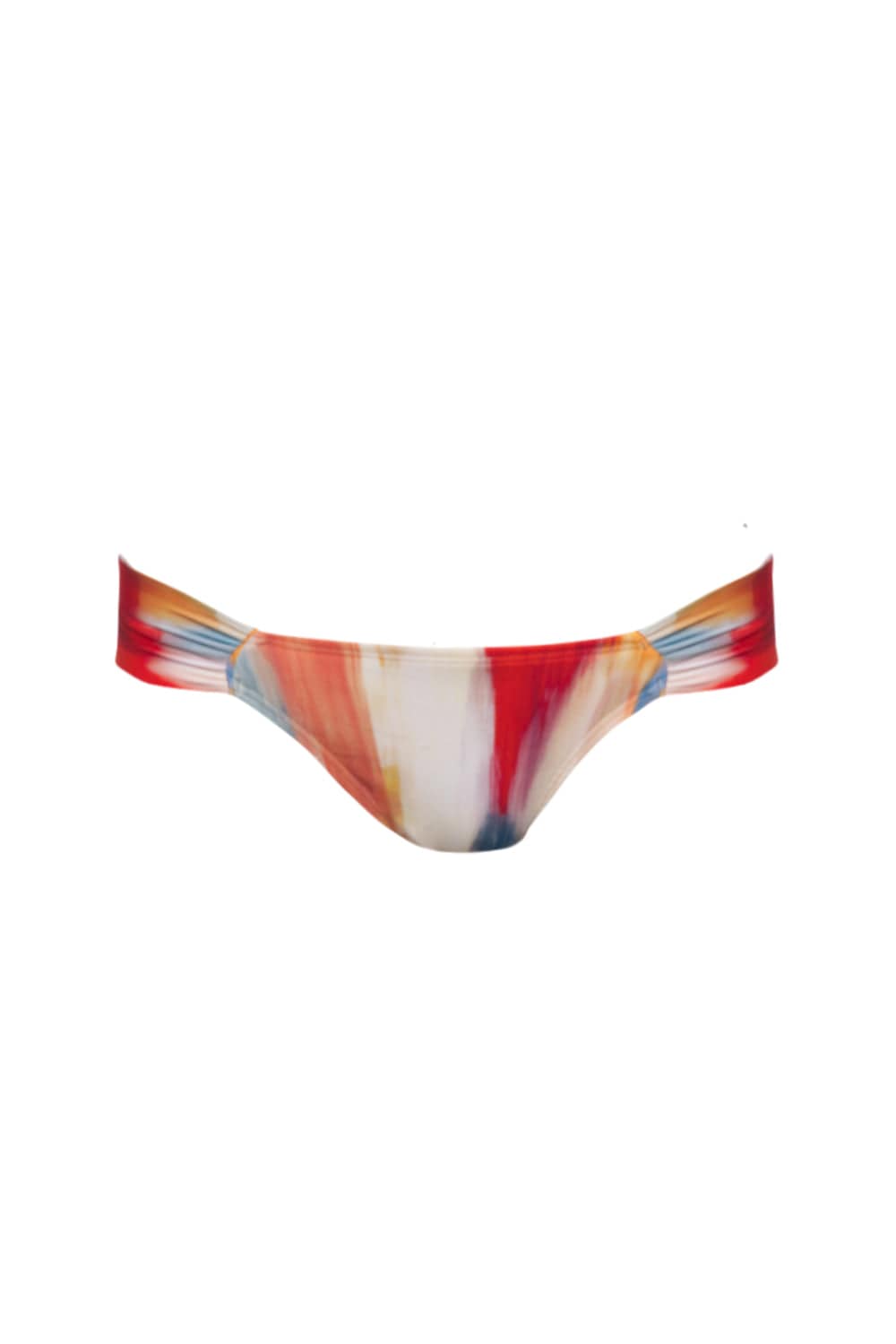GUARÁ: Essa estampa de pinceladas em tons de vermelho e dourado é inspirada na plumagem do pássaro Guará, típico da região do rio Parnaíba.