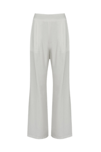 Calça pantalona em crepe de viscose, com cós inteiro e elástico nas costas.