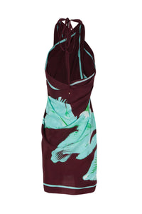 Dracena: Um floral localizado clássico da marca, essa estampa assinatura vem com fundo Merlot texturizado e uma folha feita com pinceladas.