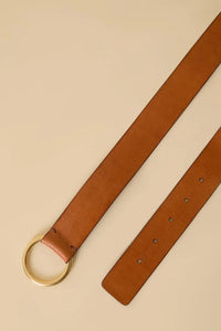 Cinto feito em couro selaria com detalhe de argola de metal e fechamento com carrapeta. Peça perfeita para incrementar looks diurnos.