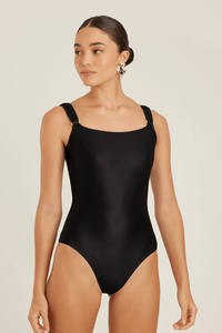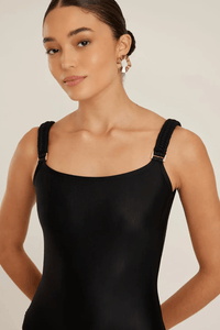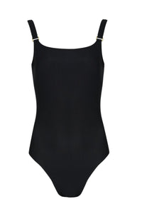 O maiô preto básico é perfeito para a prática de esportes.
