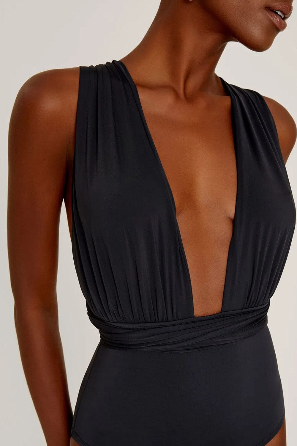 Maiô de lycra touch drapeado com alças que permitem diversas formas de amarração. Lycra touch com proteção UV FPU 50+ biodegradável.