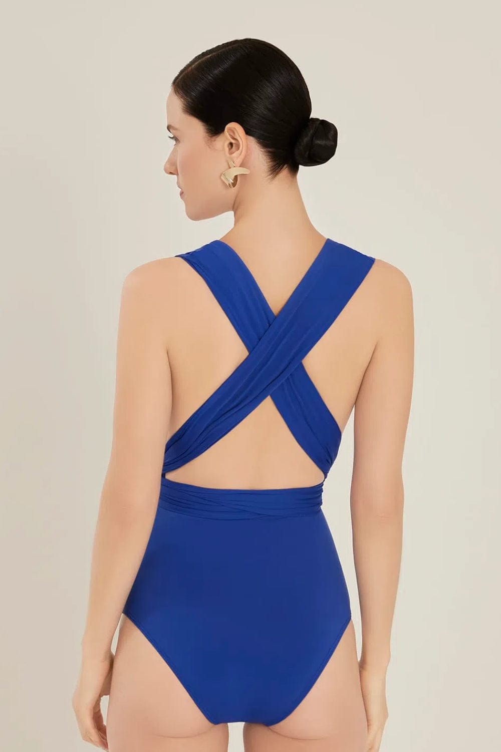 Maiô de lycra touch drapeado muito sofisticado com alças que permite diversas formas de montagem.