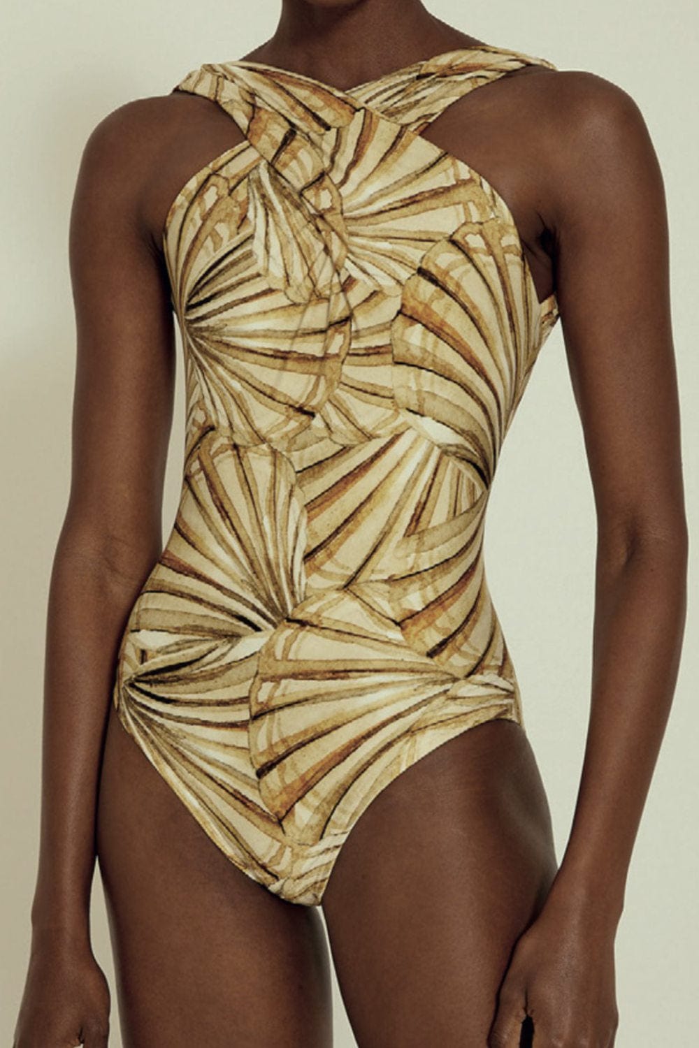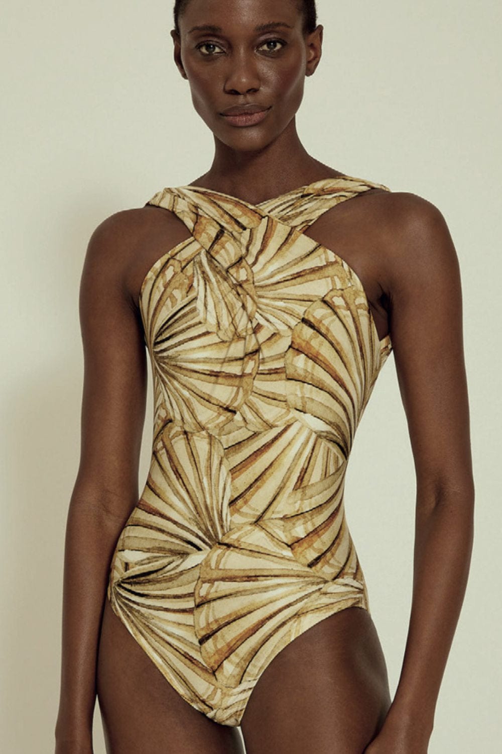 Inspirada nos tons de dourado e sépia da costa Amalfitana, a estampa AMALFI traz um gráfico com texturas de conchas. Uma estampa clássica e atemporal.