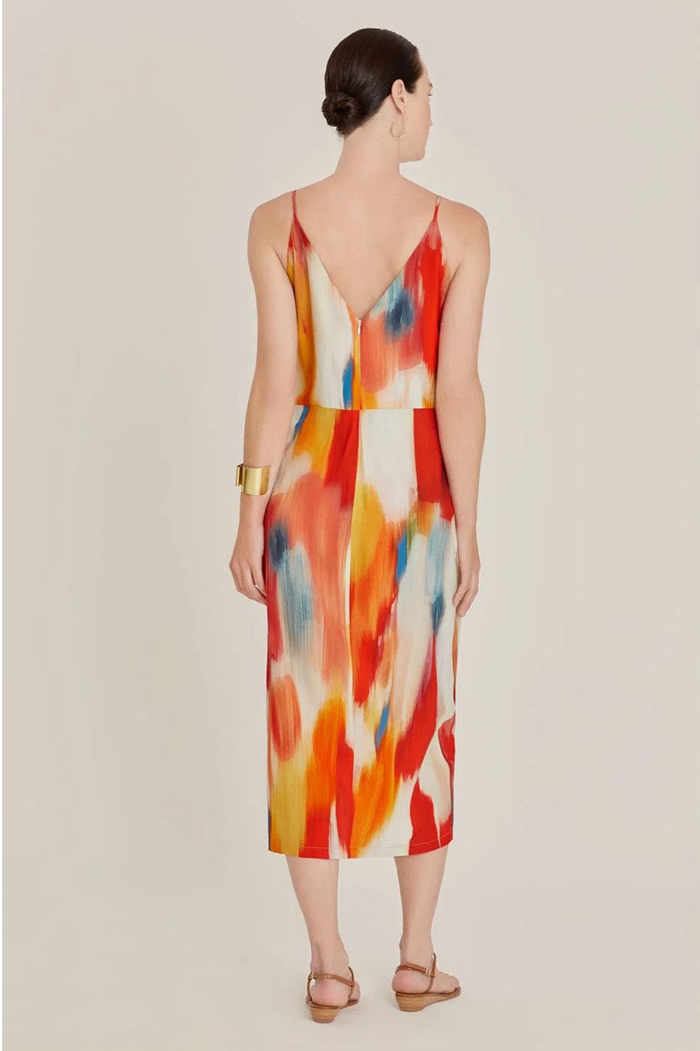Vestido feminino estampado de alça, com decote V.