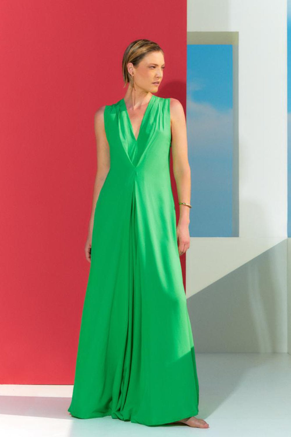 Lenny Niemeyer - Vestido Longo Prega Central Seda Verde