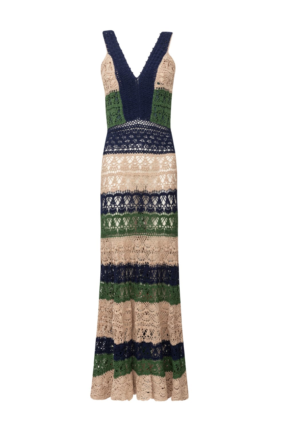 Club - Vestido Longo sem Manga de Crochet Tricolor