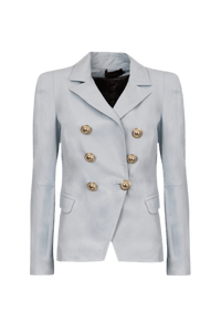M Leal - Blazer 100% Couro Botões Azul Claro