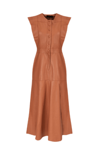 M Leal - Vestido Midi Couro Amêndoa Caramelo
