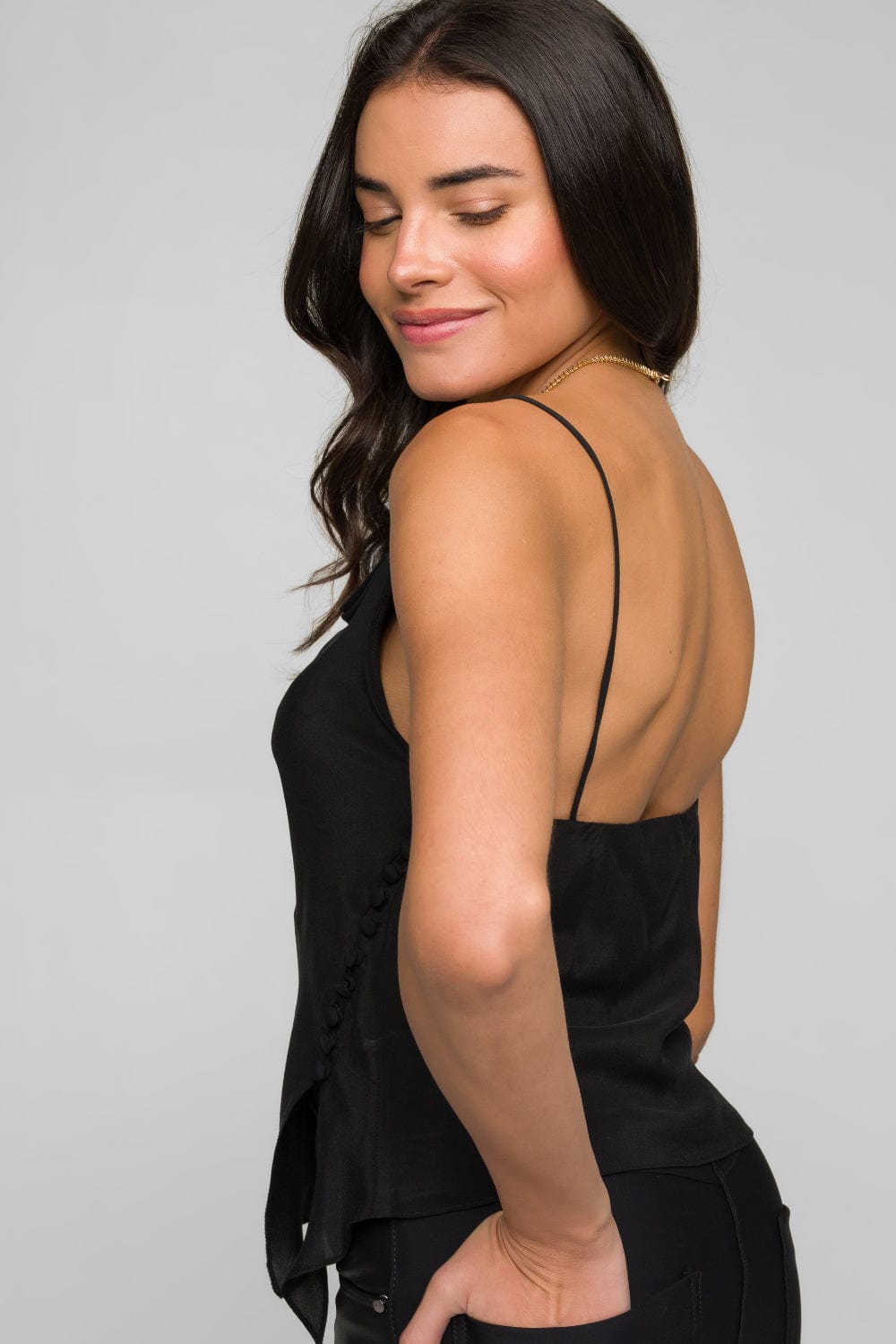 Madre Reina - Blusa Alça Fina Botões Seda Preto