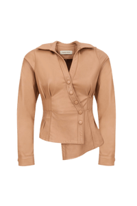 Madre Reina - Camisa Manga Longa Assimétrica Betina Couro Caramelo