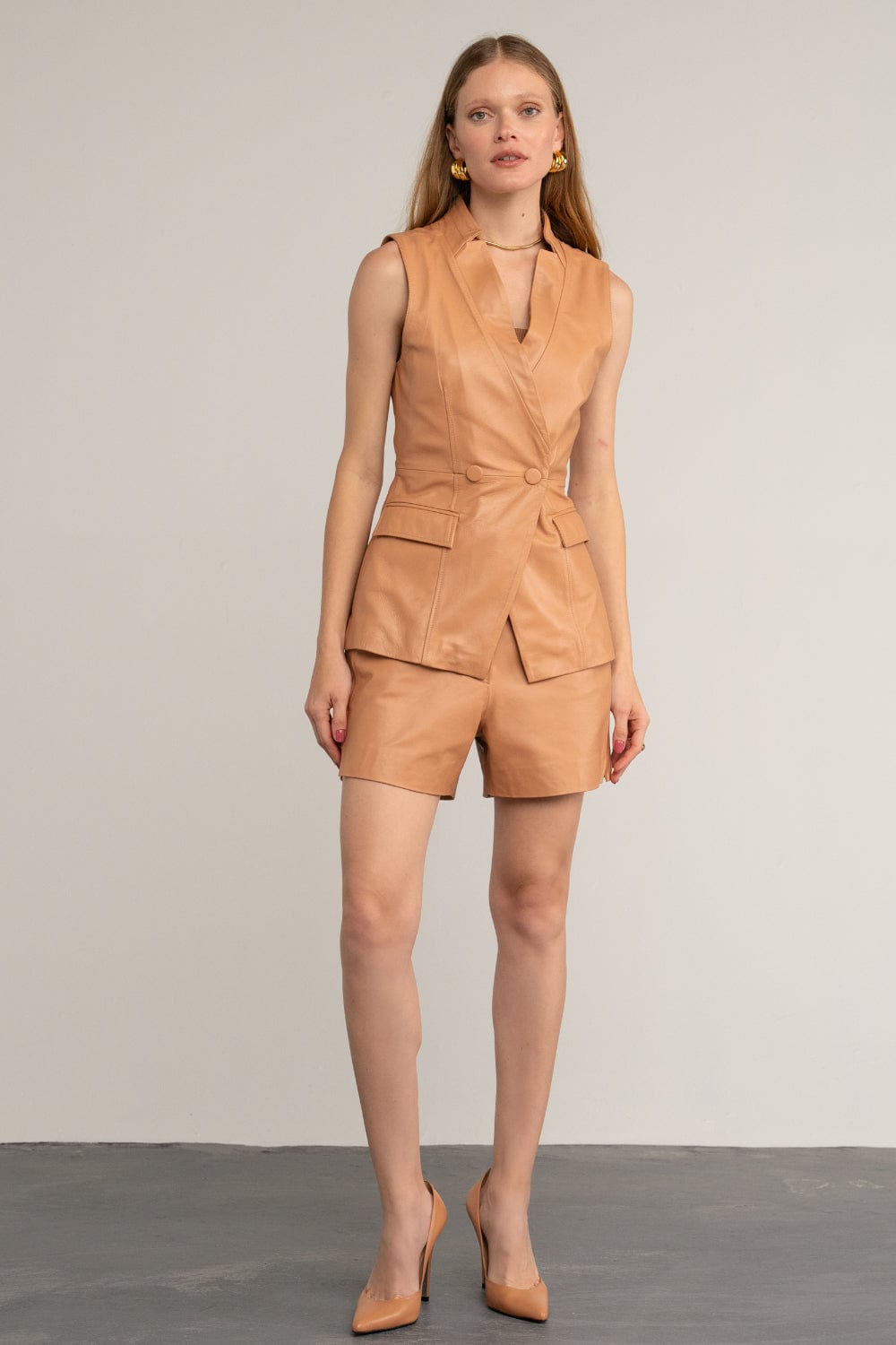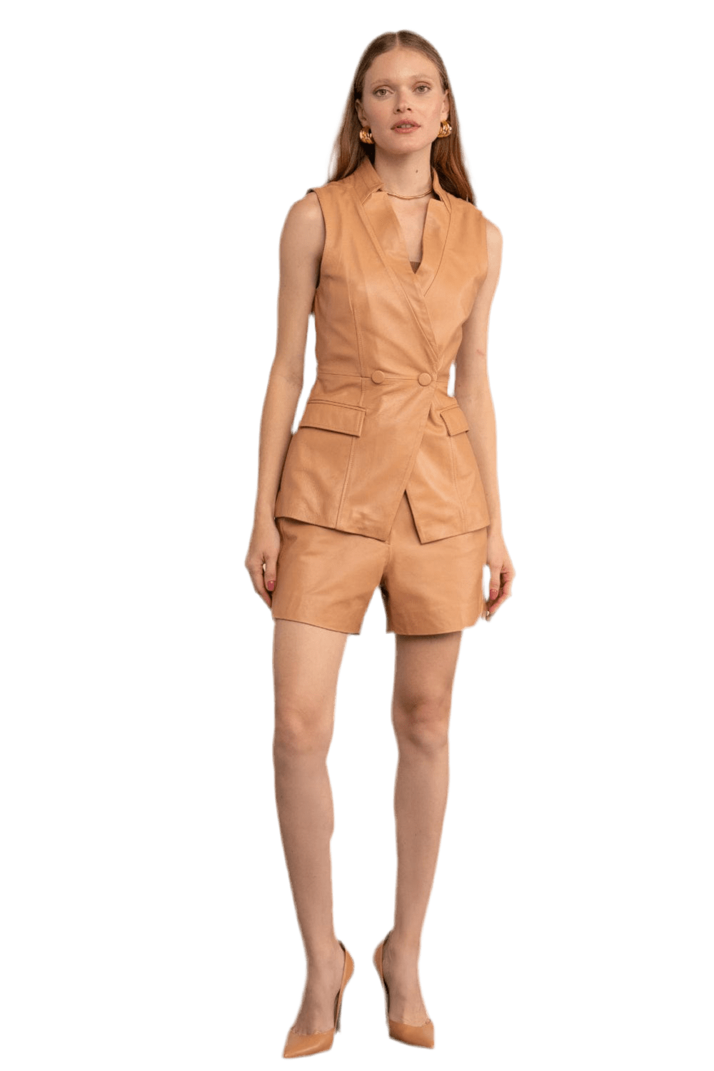 Madre Reina - Colete Couro Betina Marrom Machiatto