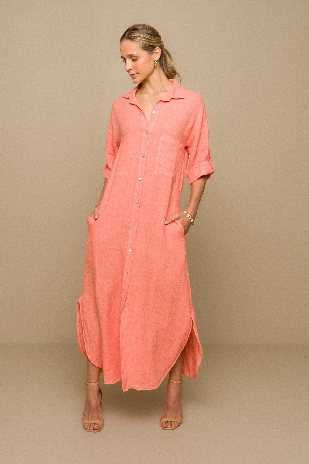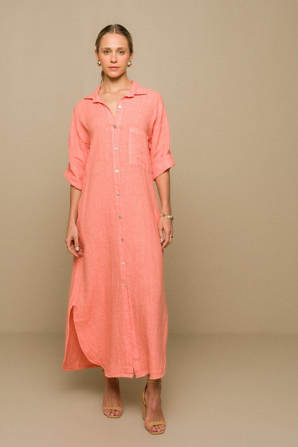 Madre Reina - Vestido Longo em Linho Mariana Pitanga Laranja