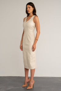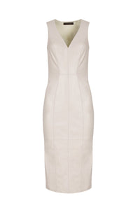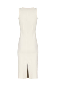 Madre Reina - Vestido Midi Tricot com Couro Luiza Off White
