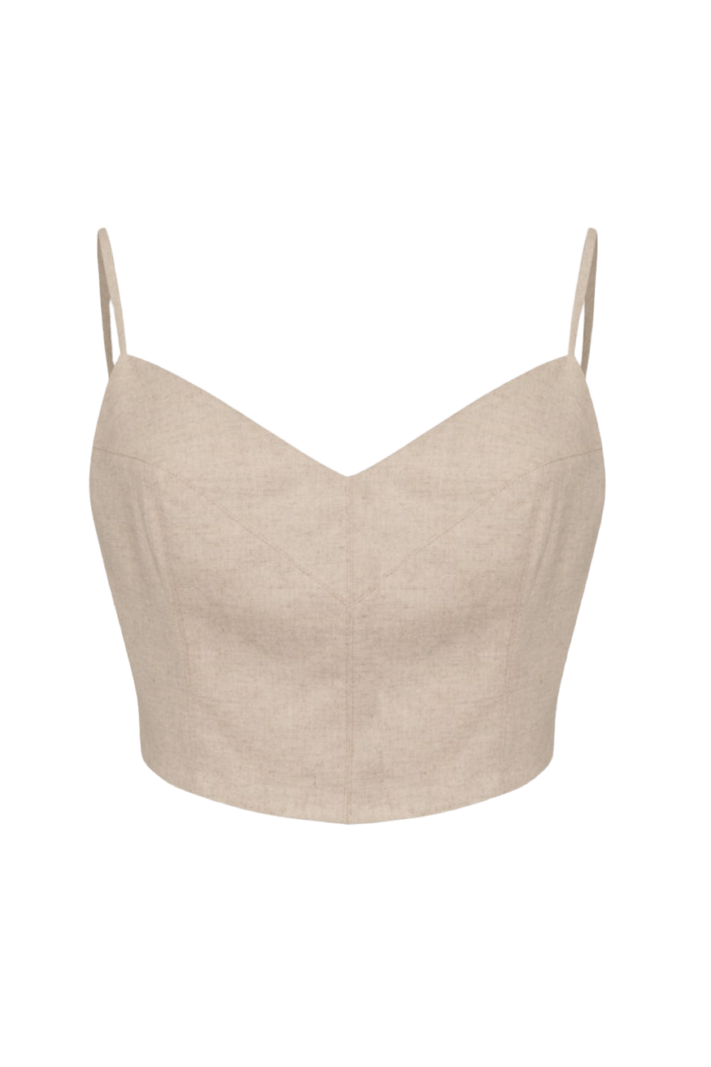 Mib - Blusa Cropped Alça Fina Viscolinho Bege