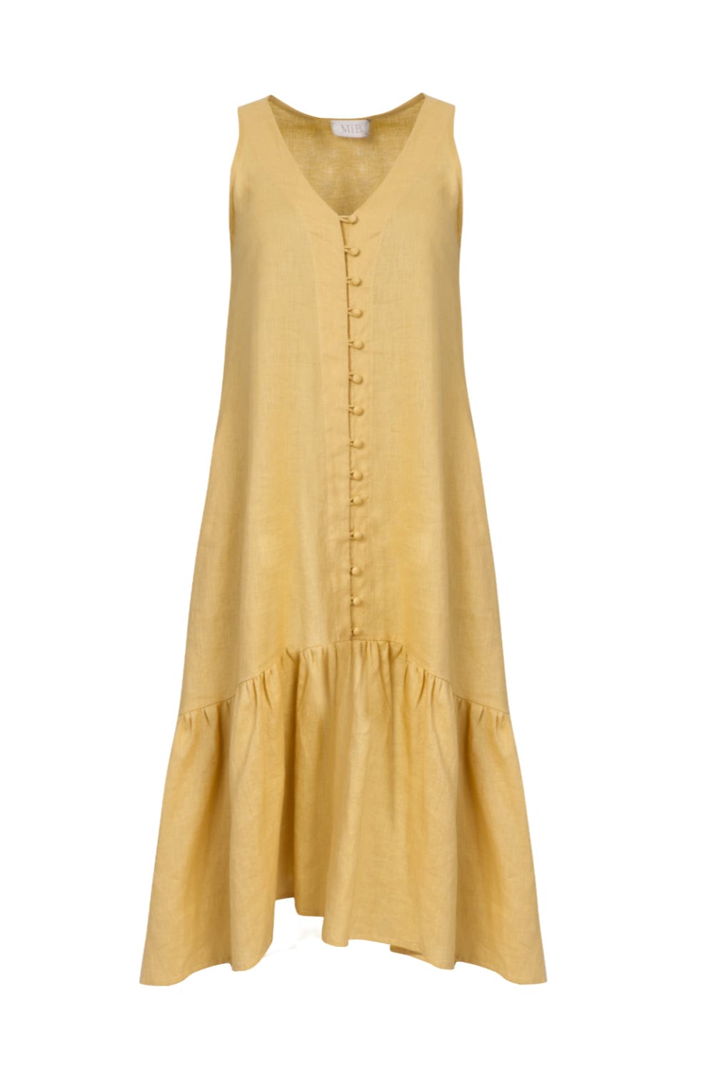 MIB - Vestido Midi sem Manga Linho Amarelo