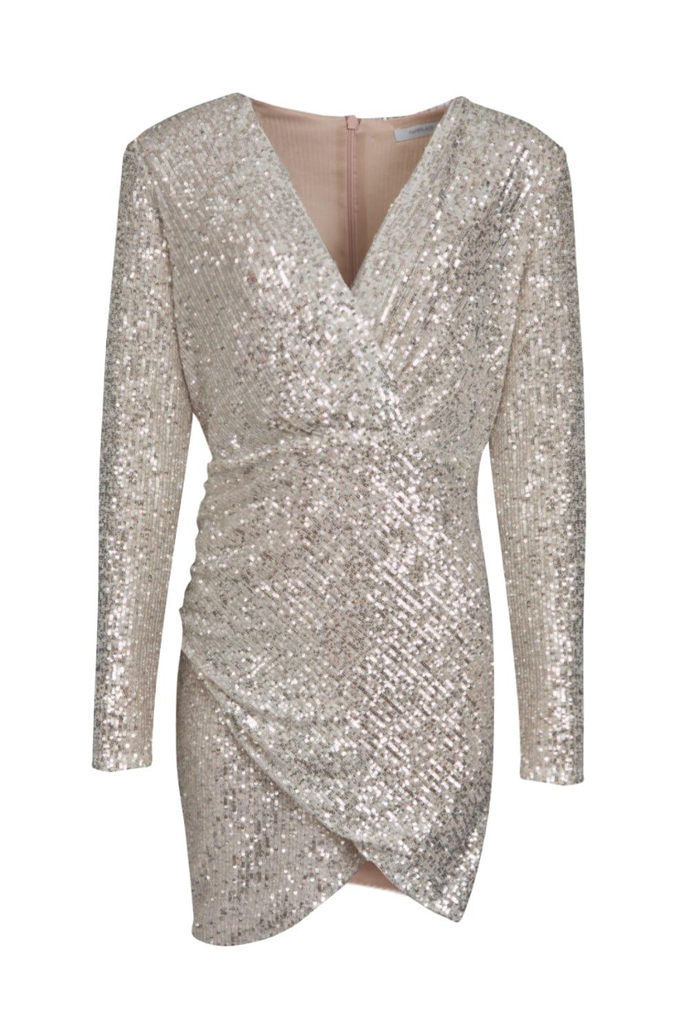 Paperlace - Vestido Curto de Manga Longa de Paetês Bege