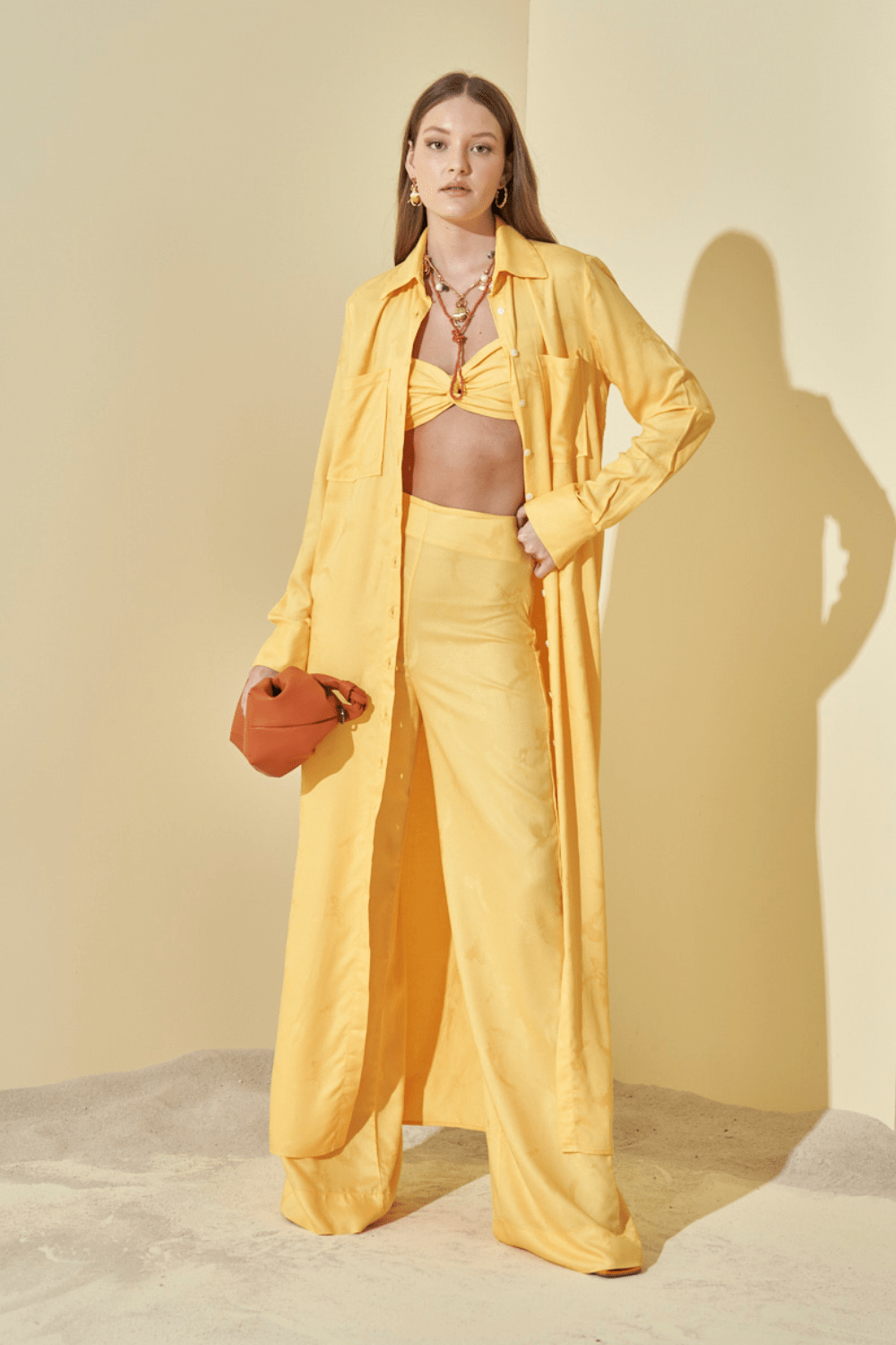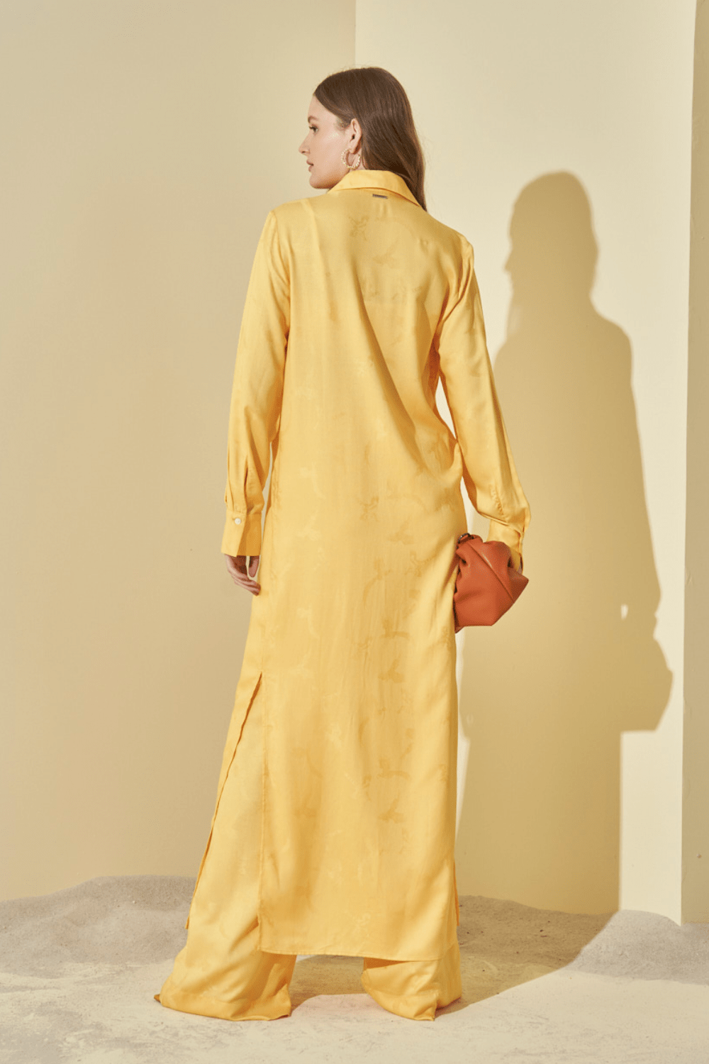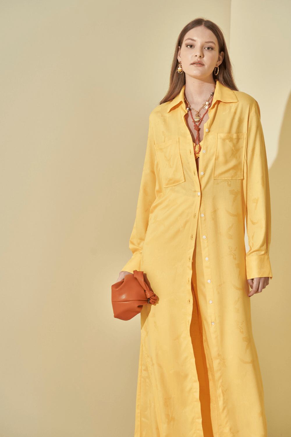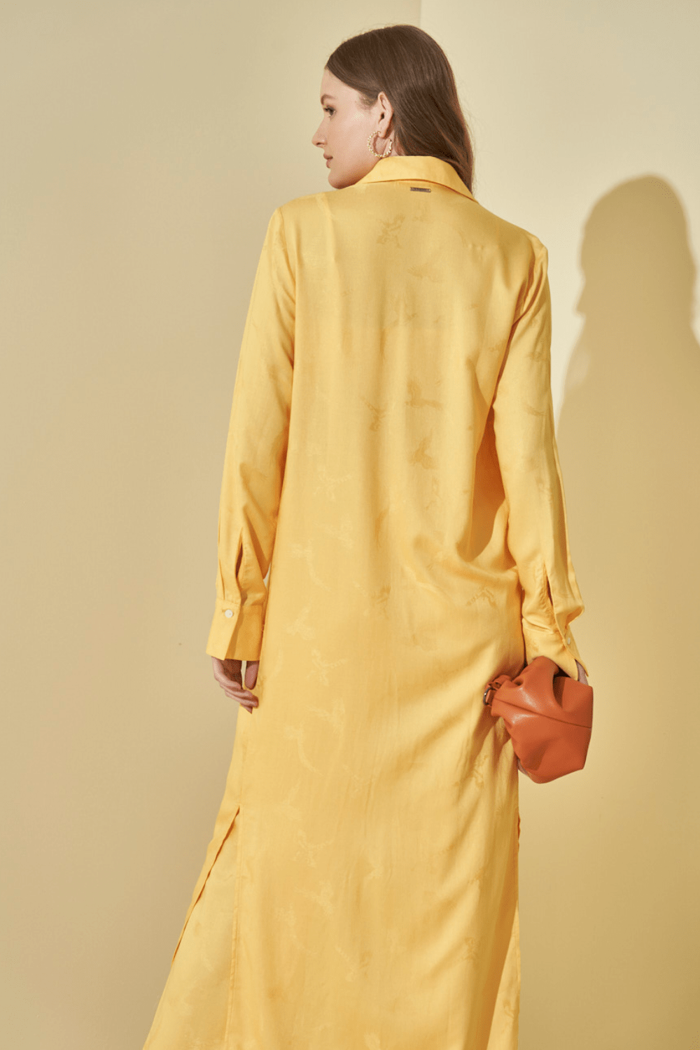 L'Cecci - Vestido Longo Chemisier Jacquard Amarelo