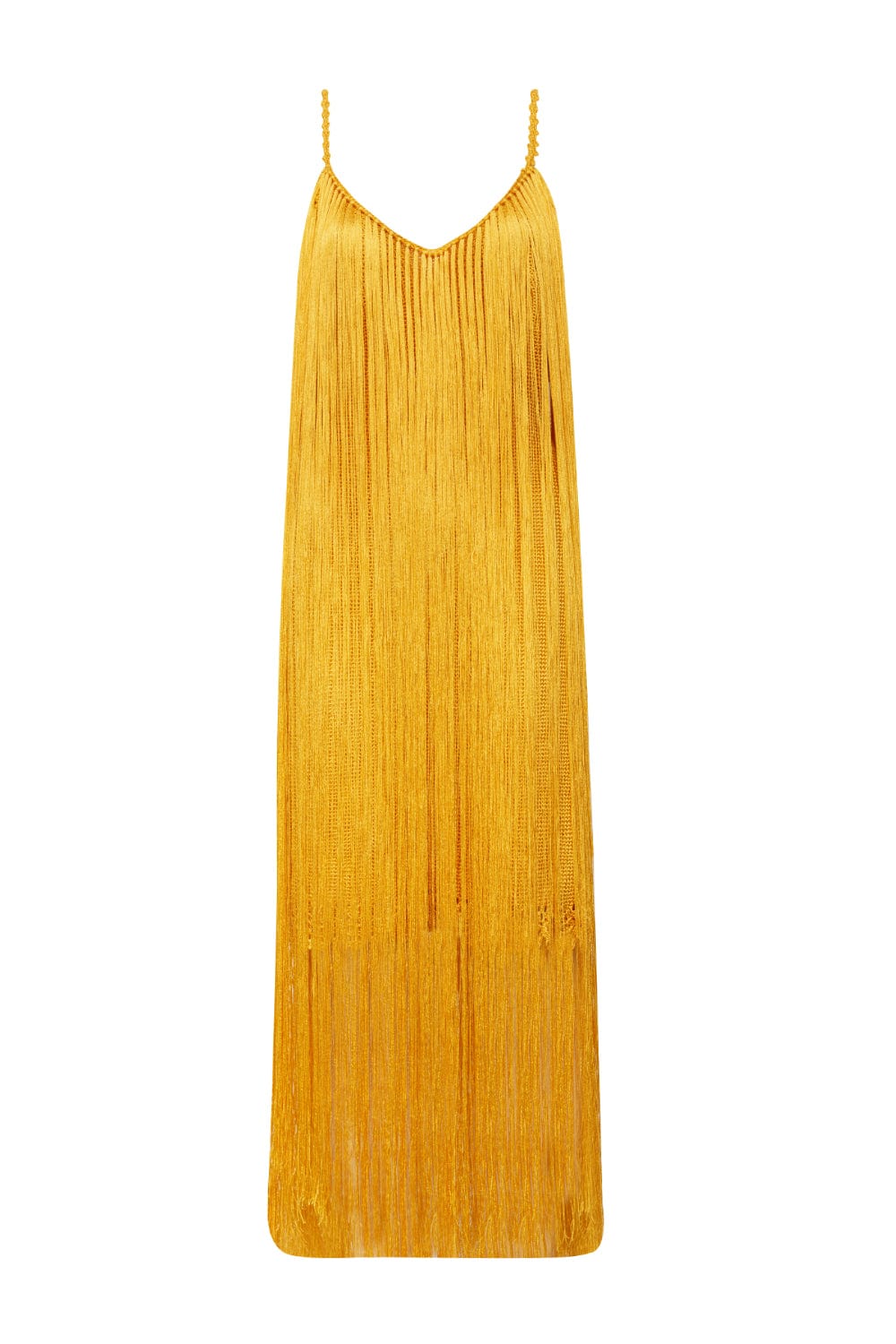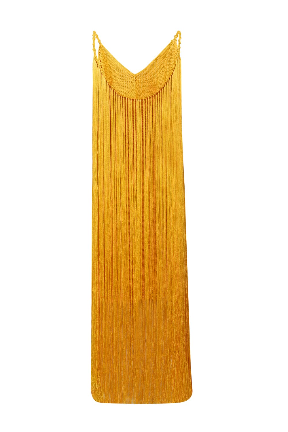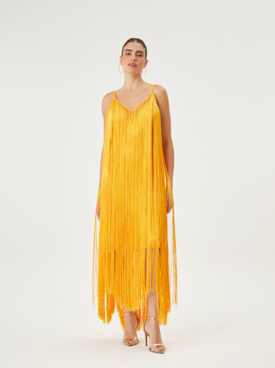 Club - Vestido Midi de Crochet Franjas Amarelo
