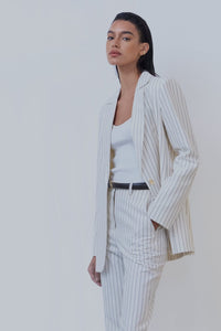 Viviane Furrier - Blazer Alongado Alfaiataria Risca de Giz Preto