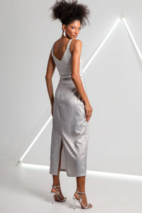 Seu decote em V valoriza o colo e as alças ajustáveis permitem um ajuste perfeito ao corpo.
