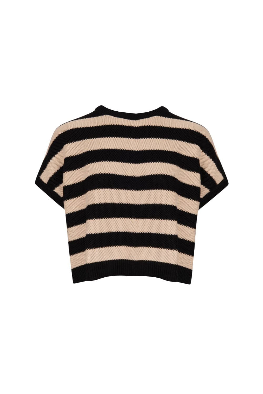 Feita em tricot, ela possui gola canoa, listras horizontais, tornando-a casual e descomplicada, ideal para looks do dia-a-dia.