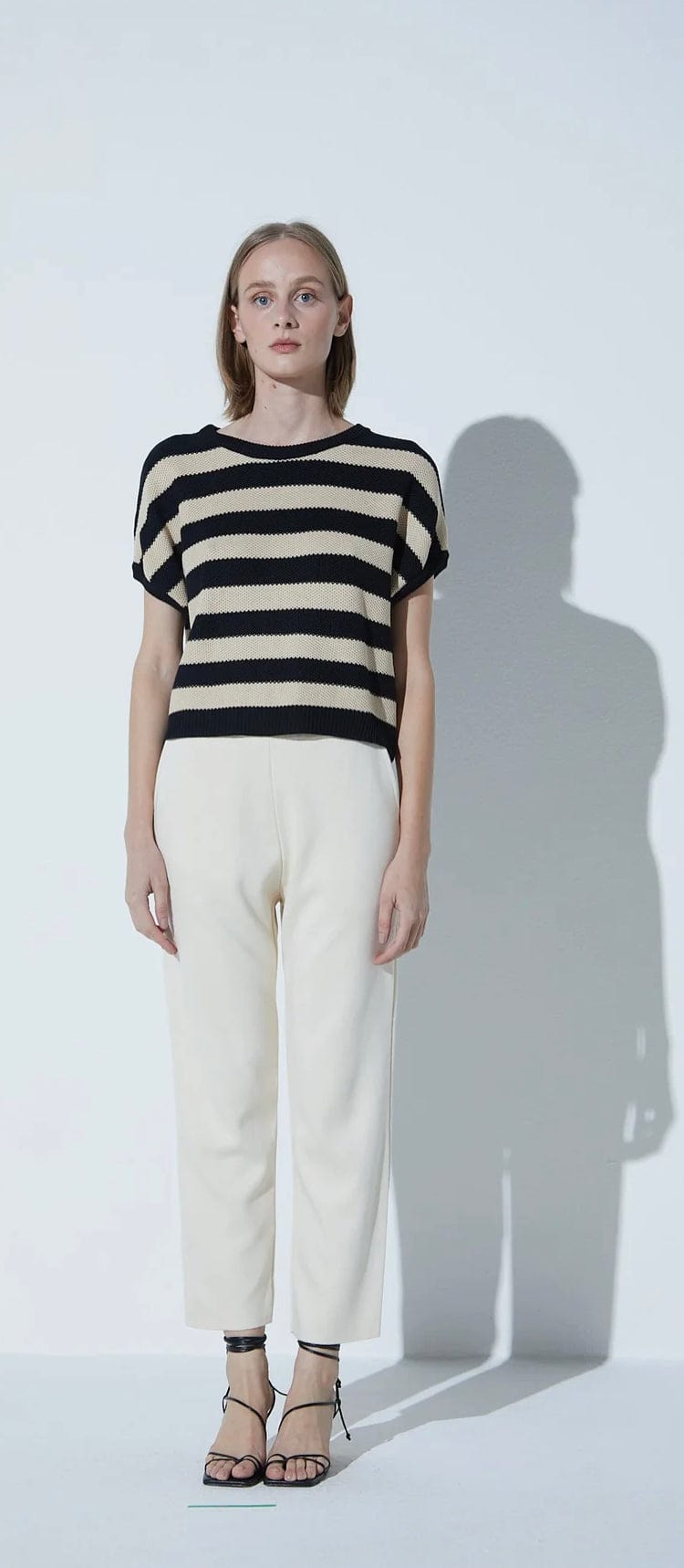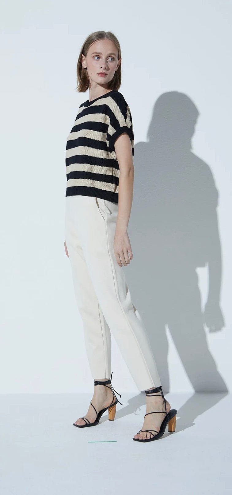 A Blusa Ampla Listras Em Tricot é uma peça versátil e atemporal.