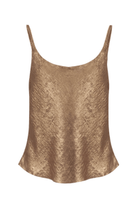O destaque fica para o aspecto brilhante do tecido lamê e as alças finas duplas que trazem um ar feminino e delicado à peça.