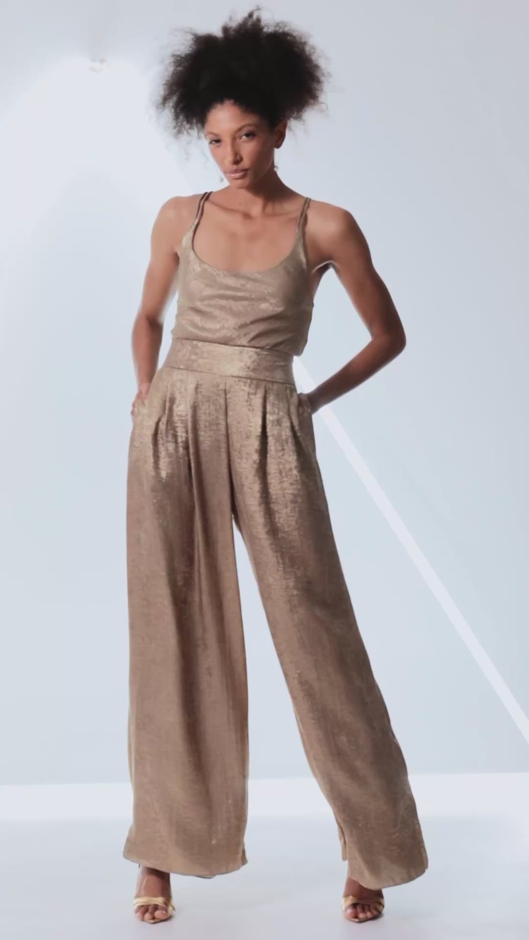 Viviane Furrier - Blusa Alça Fina Lamê Dourado