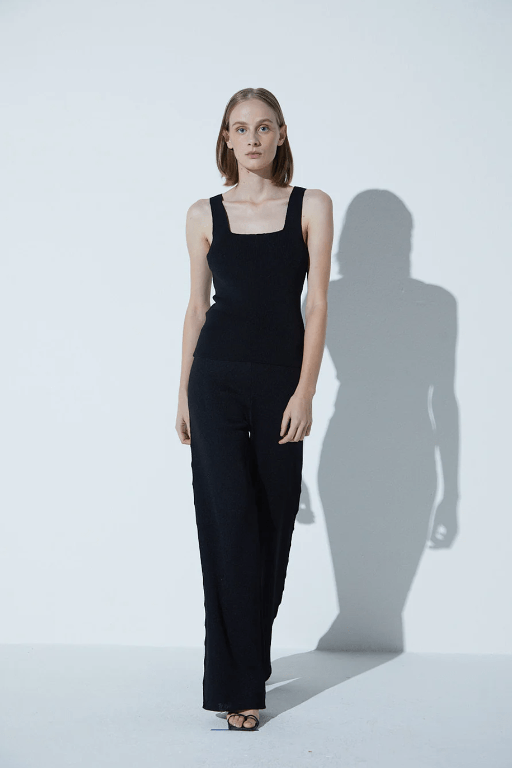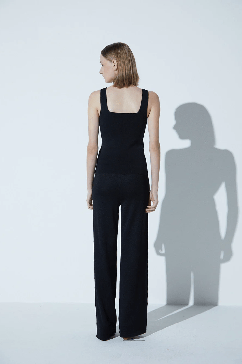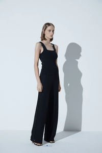 Viviane Furrier - Blusa sem Manga Decote Quadrado em Tricot Preto