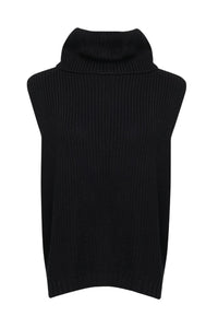 Viviane Furrier - Blusa sem Manga em Tricot com Maxi Gola Preto
