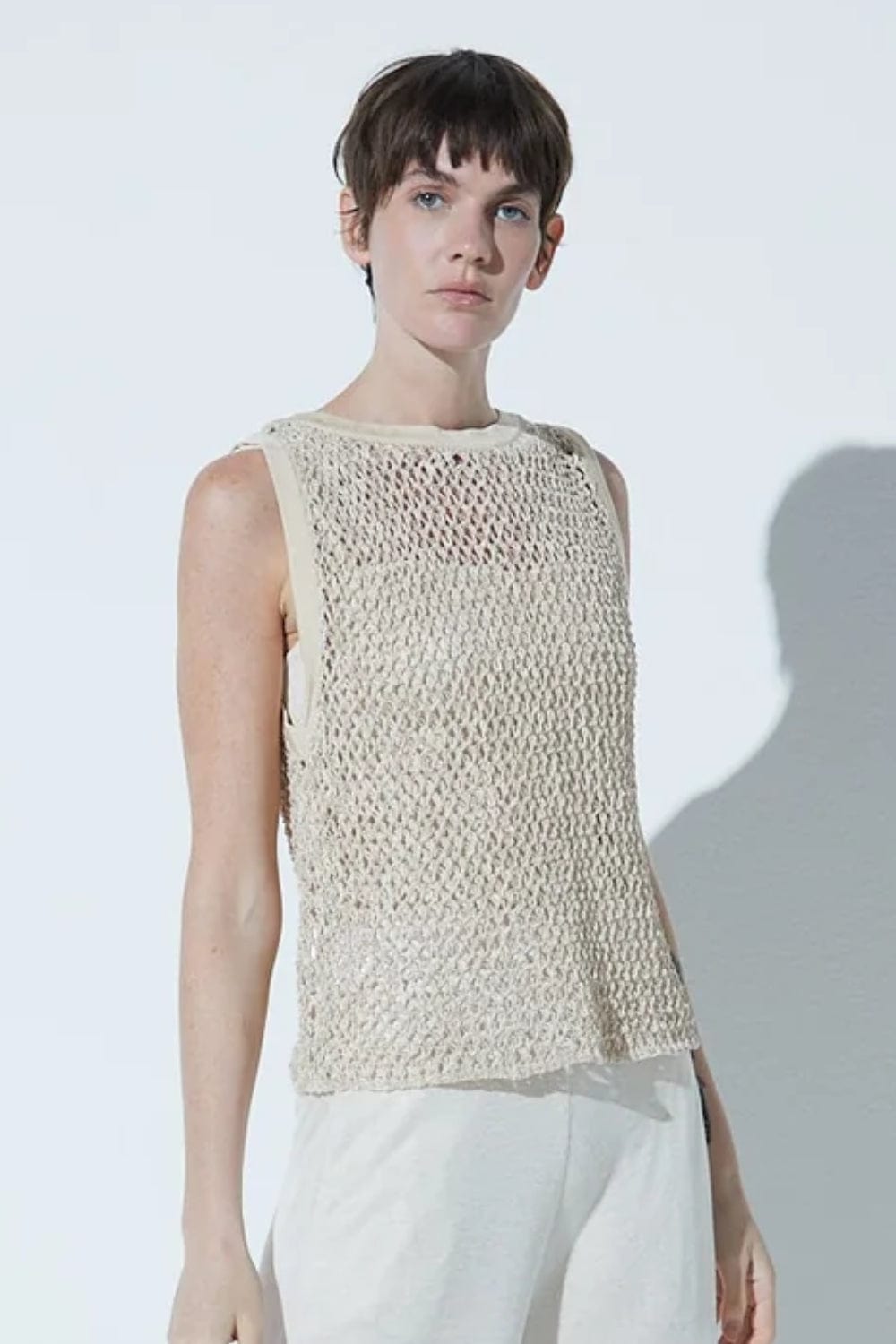Viviane Furrier - Blusa sem Manga em Tricot Telado Ninive