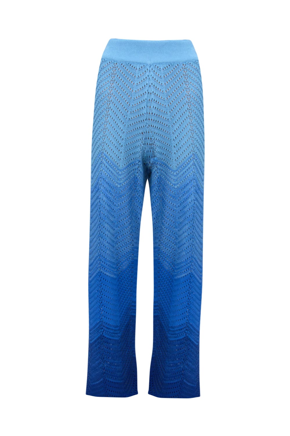 A Calça Degradê foi confeccionada em tricot de viscose em ponto rendado.