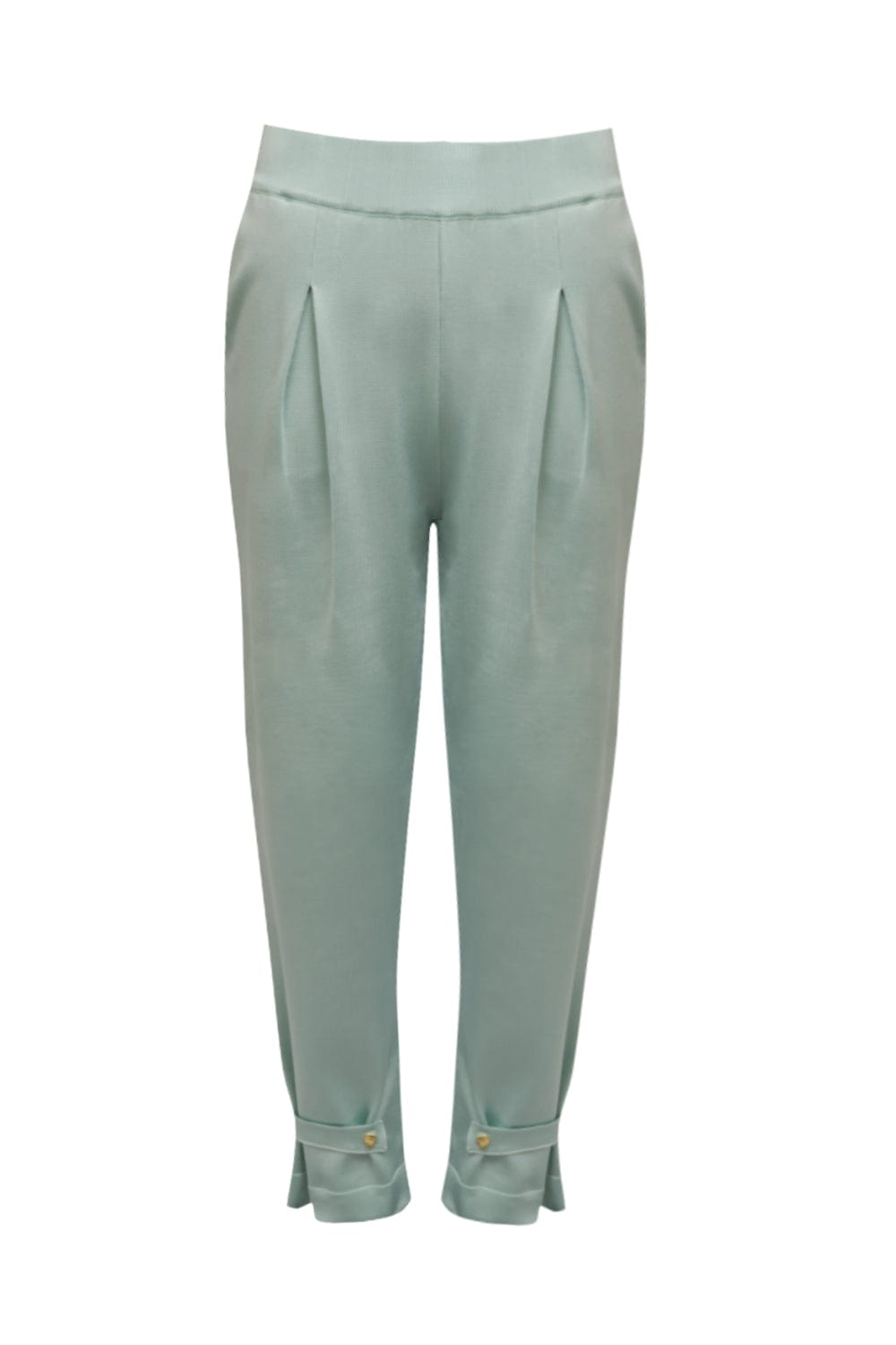 Viviane Furrier - Calça com Pregas em Tricot Azul Aqua