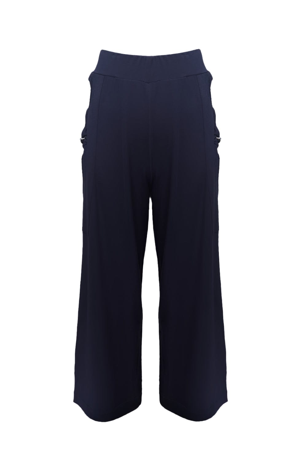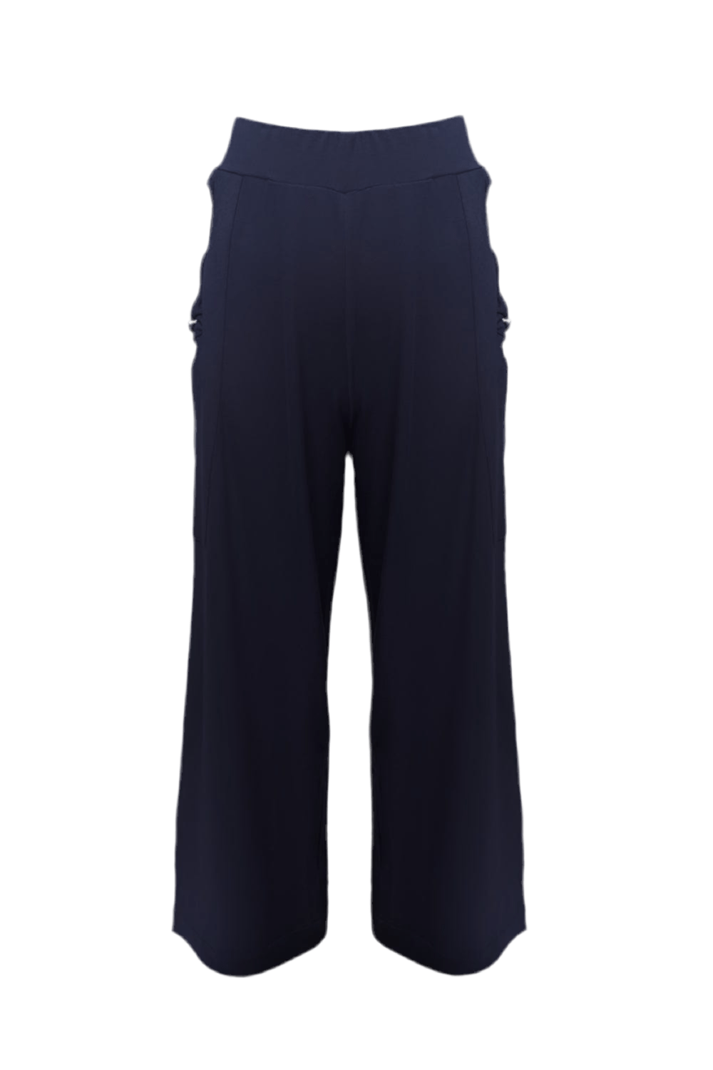 Viviane Furrier - Calça Reta com Bolsos em Malha Azul Marinho