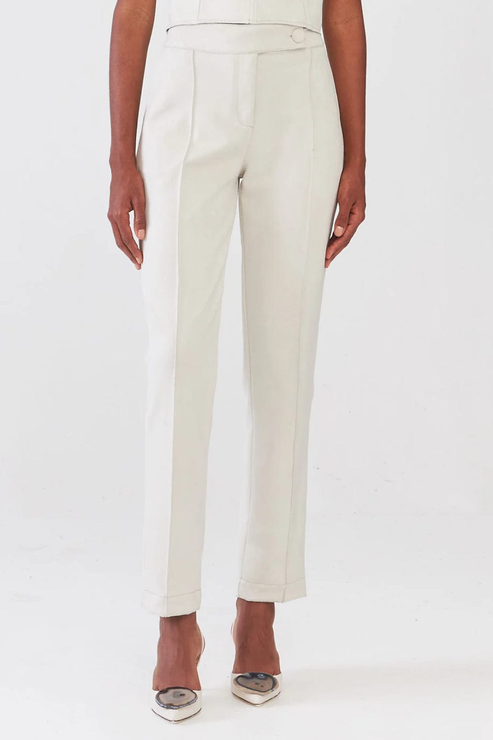 Viviane Furrier - Calça Reta com Nervuras em Malha Off White