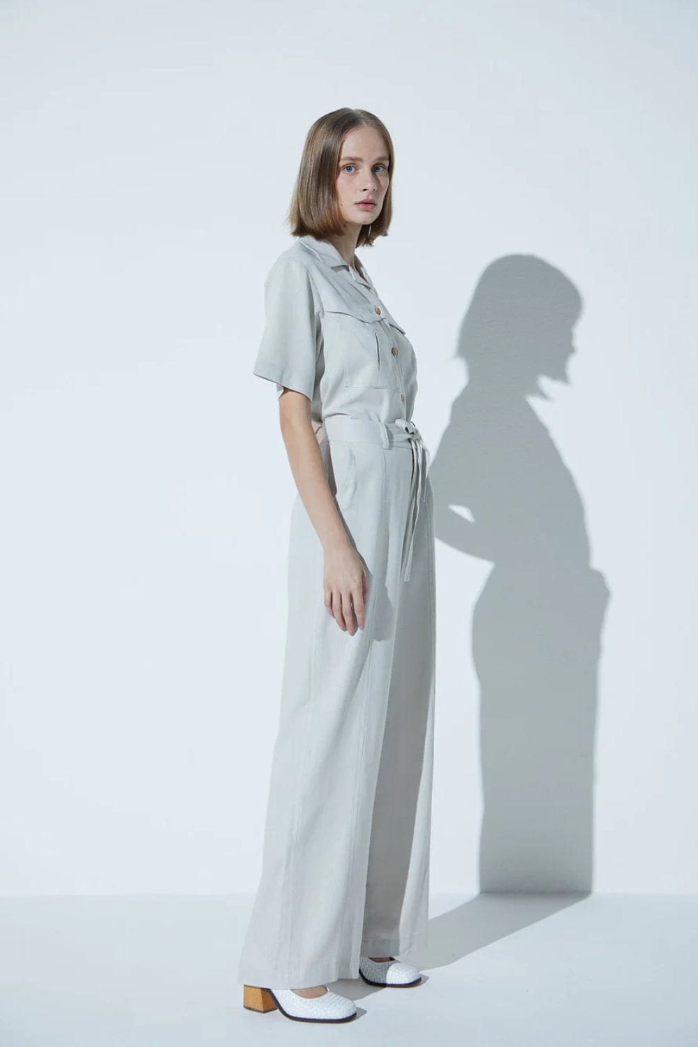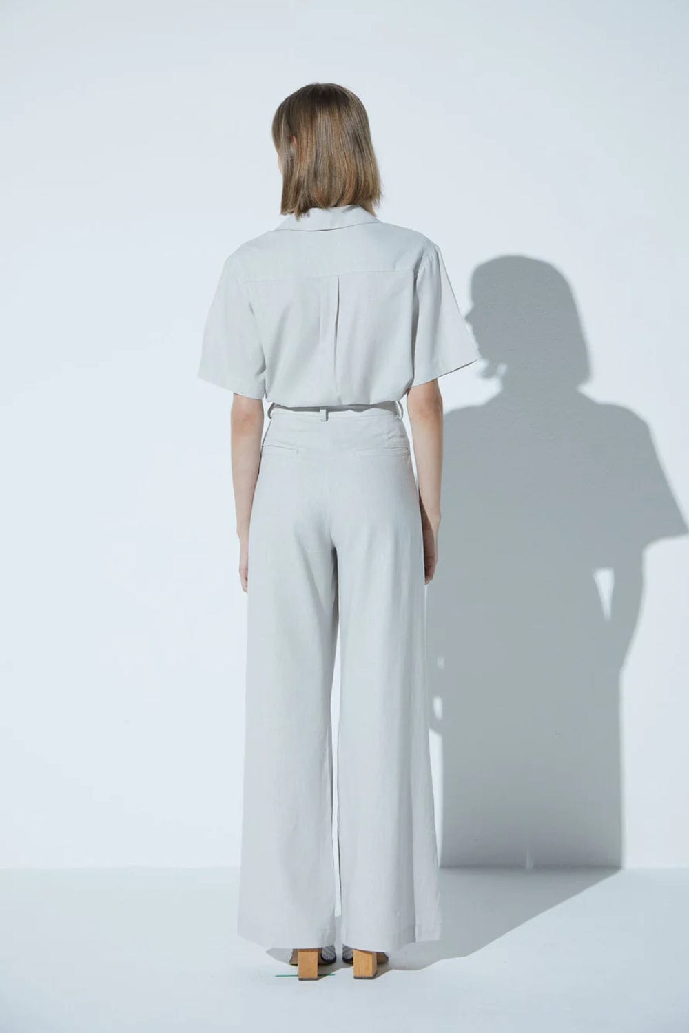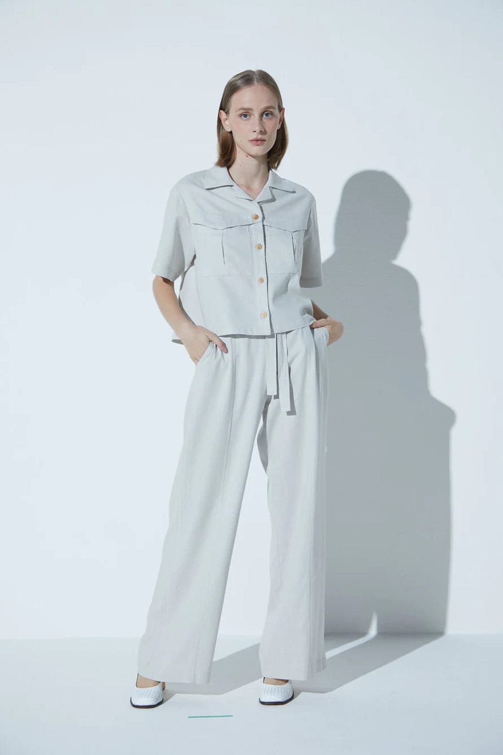 Com sua modelagem cropped e bolsos frontais a peça une o conforto do tecido de viscose com o aspecto rústico do linho para compor um visual único cheio de detalhes e recortes que valorizam a mulher Viviane Furrier.