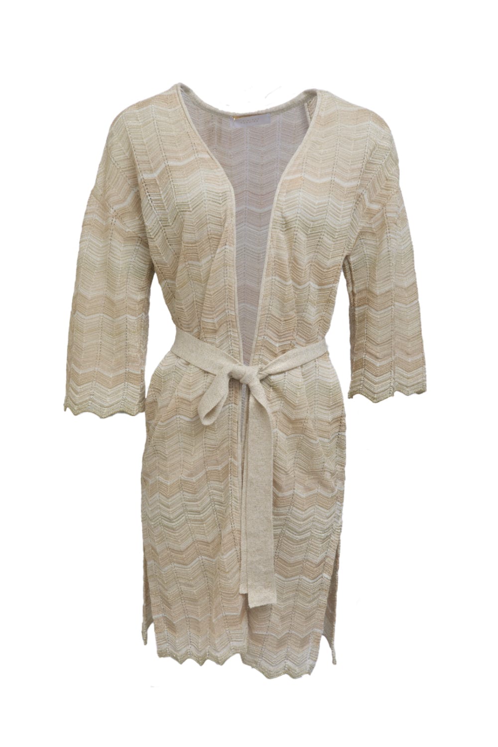 Viviane Furrier - Cardigan Curto em Tricot Zig Zag Dourado