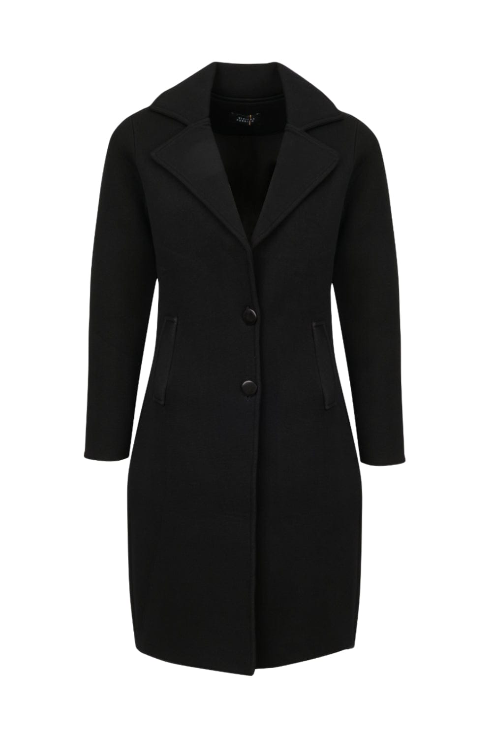 Statement Coat - Sobretudo 7/8 em Tricot Dublado Preto com modelagem clássica, fechamento frontal por botões e bolsos laterais embutidos. Uma peça elegante e versátil que acompanha você do escritório a produções urbanas sofisticadas.