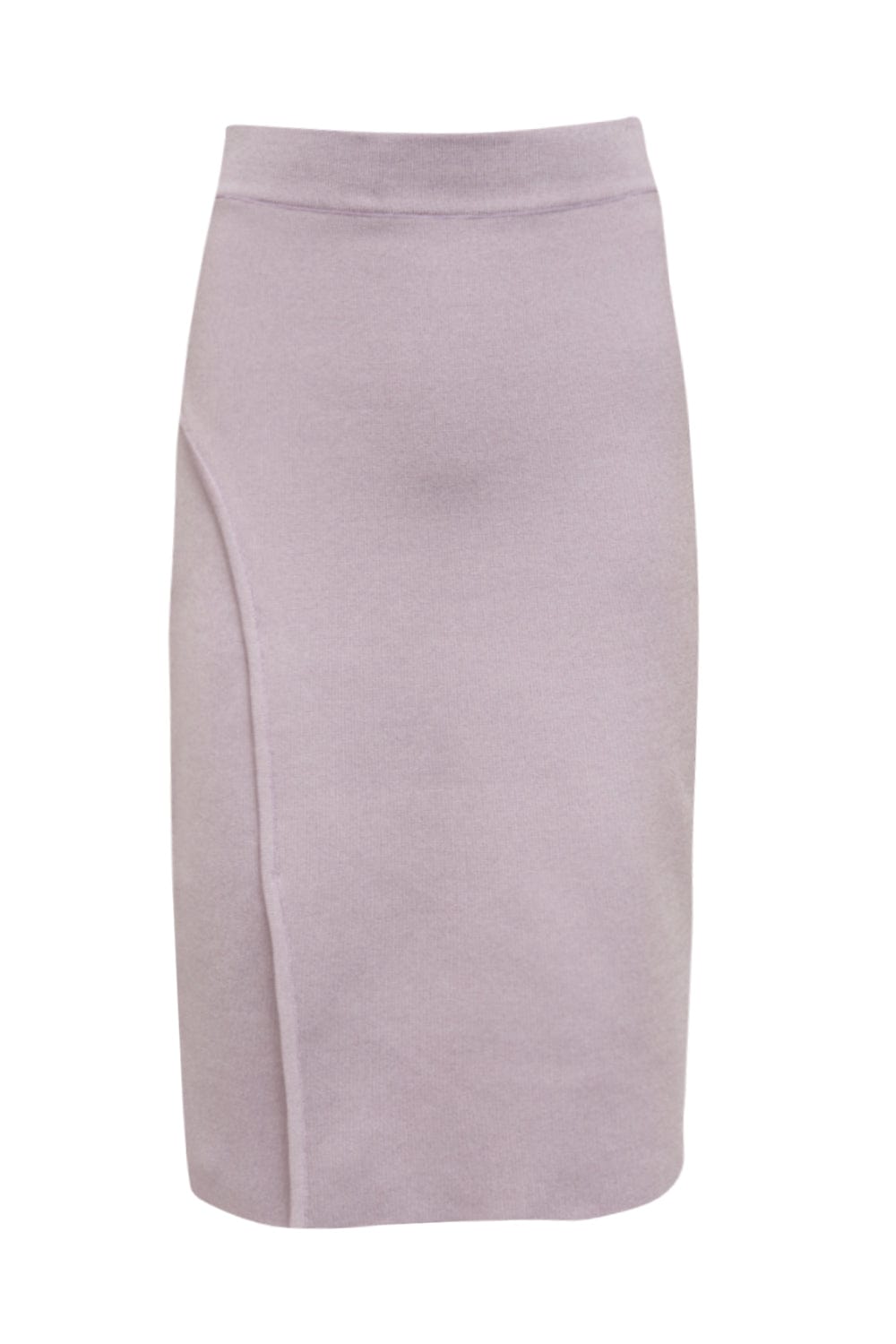 Viviane Furrier - Saia Midi com Fenda em Tricot Estruturado Lilás