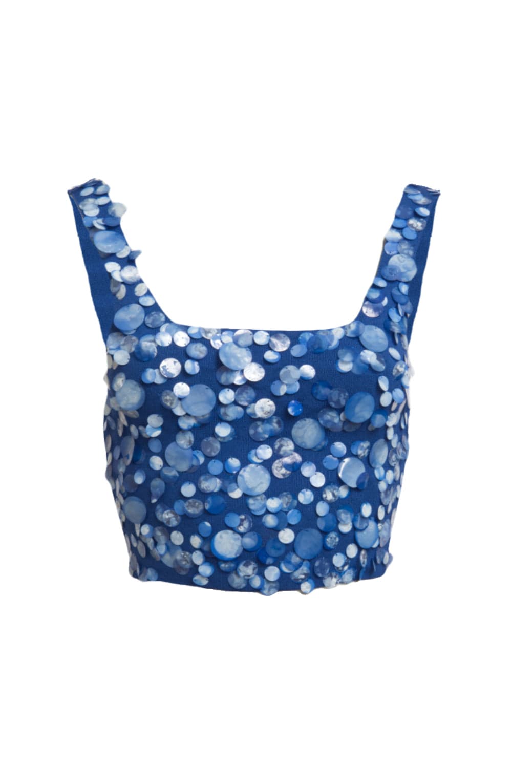 Viviane Furrier - Blusa Cropped em Tricot em Paetês Azul