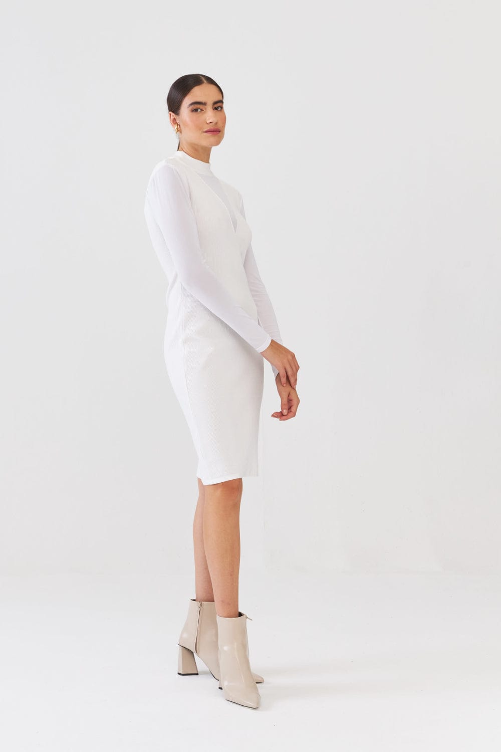 Viviane Furrier - Vestido Curto em Tricot com Transparência Off White