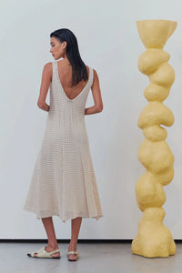 Viviane Furrier - Vestido Midi Sem Manga Tricot Bege